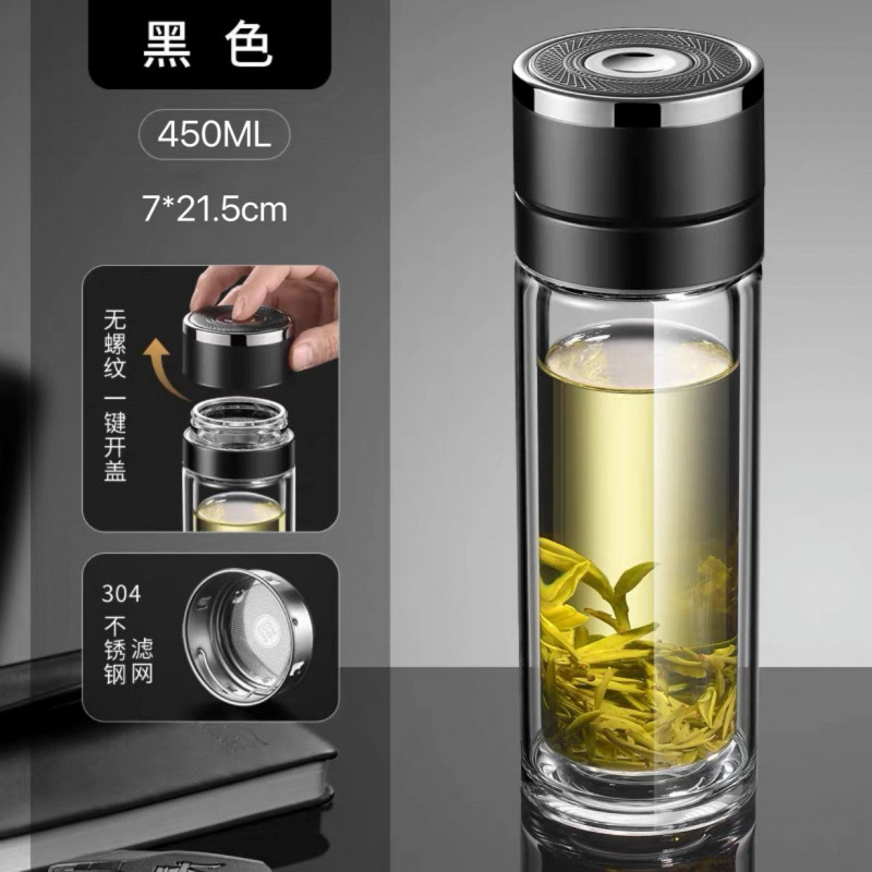 새로운 차 분리 컵 남자 차 빠른 오프닝 컵 원 버튼 오픈 뚜껑 더블 레이어 유리 휴대용 프레스 컵