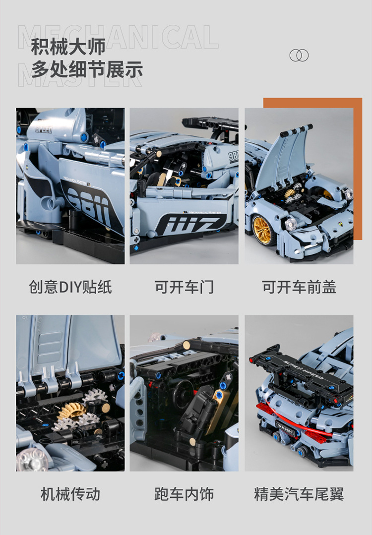 Wanchi 기계 마스터 9811 포르쉐 럭셔리카 로고 빌딩 블록 모델 선물 장난감 소년 조립 레고 호환스토어 가기