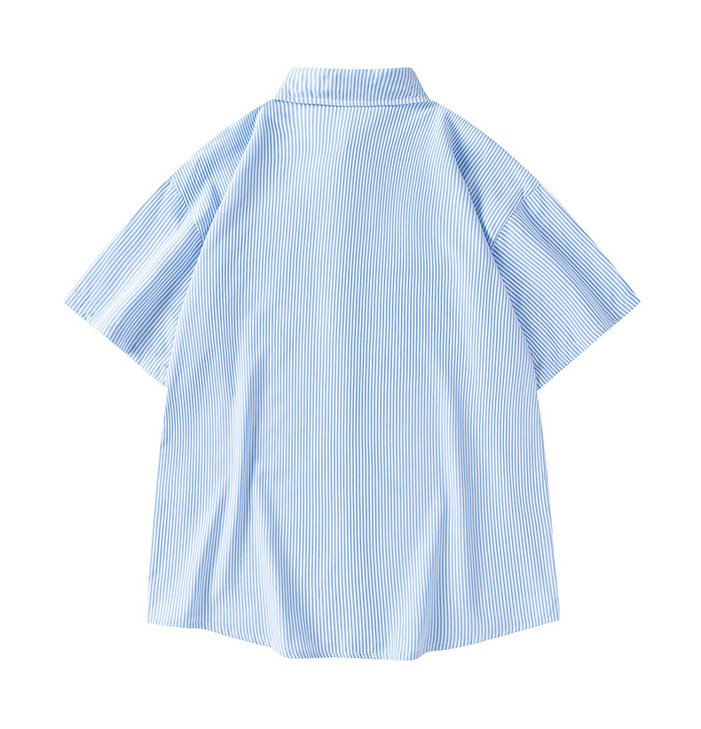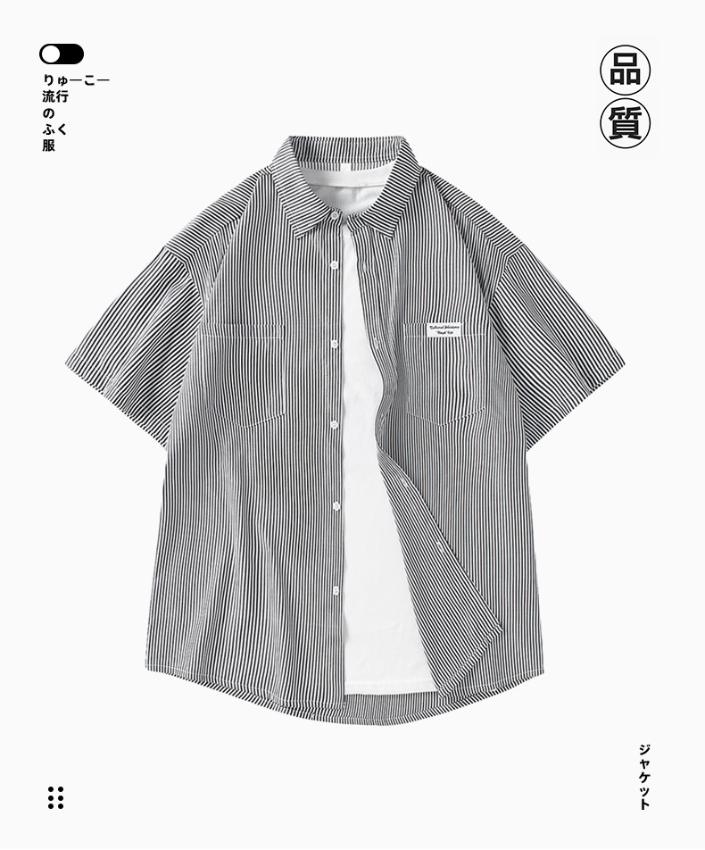 줄무늬 셔츠 반팔 남성 여름 일본 스타일 레트로 아메리칸 스타일 트렌디 라벨 느슨한 캐주얼 반팔 셔츠스토어 가기