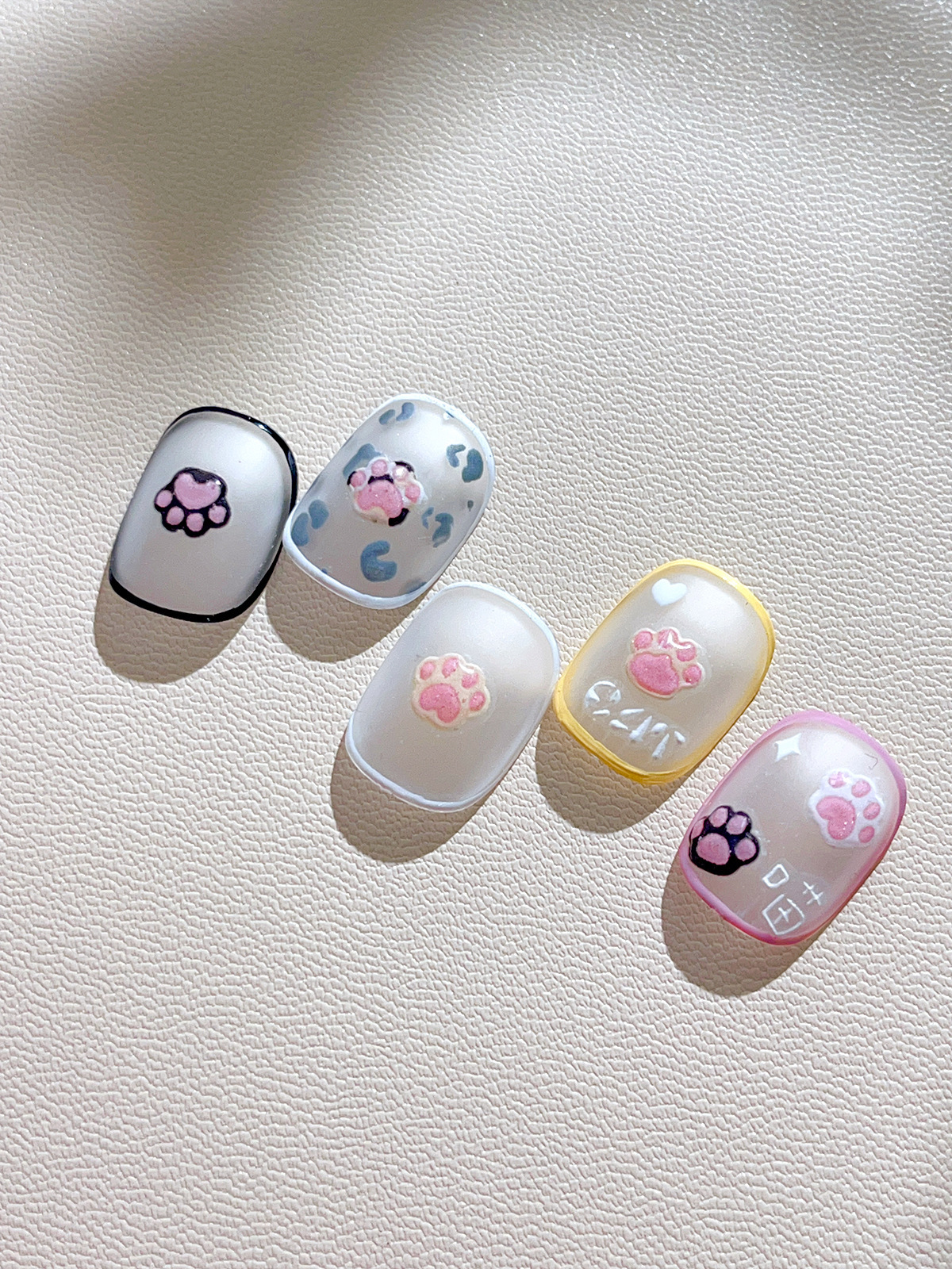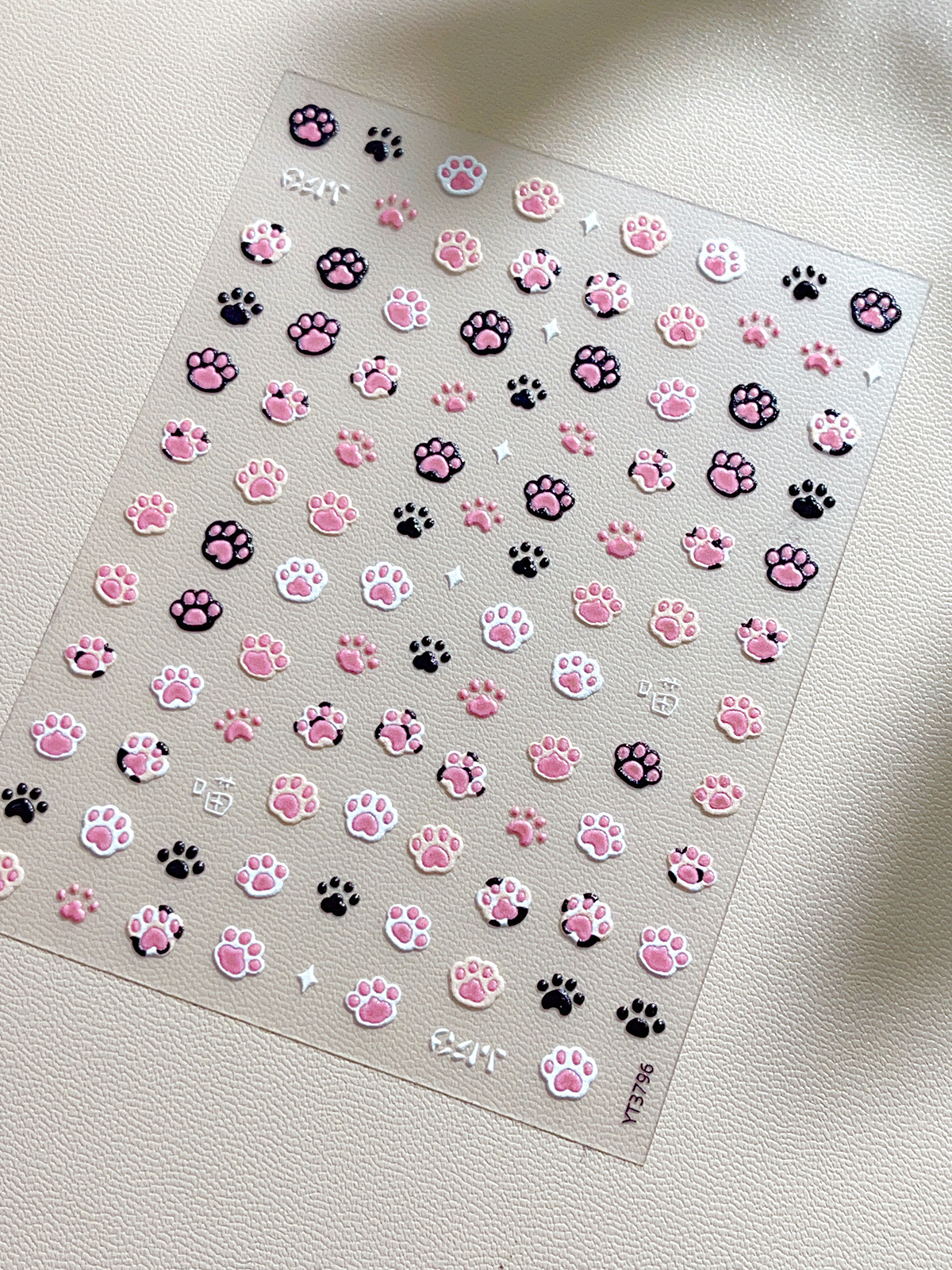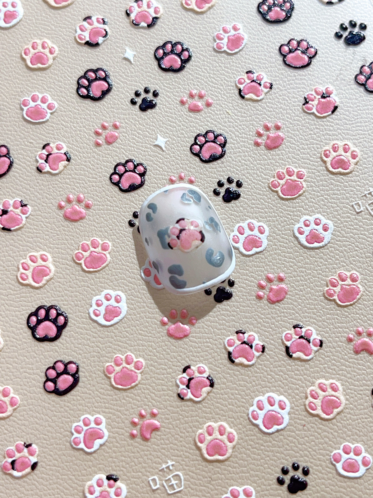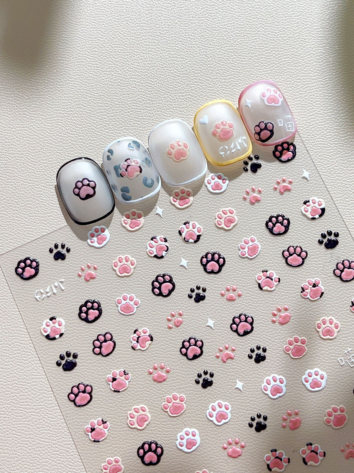 귀여운 고양이 발톱 네일 아트 스티커 만화 3 차원 구호 개 발톱 프린트 스트랩 접착제 네일 데칼 장식 도매