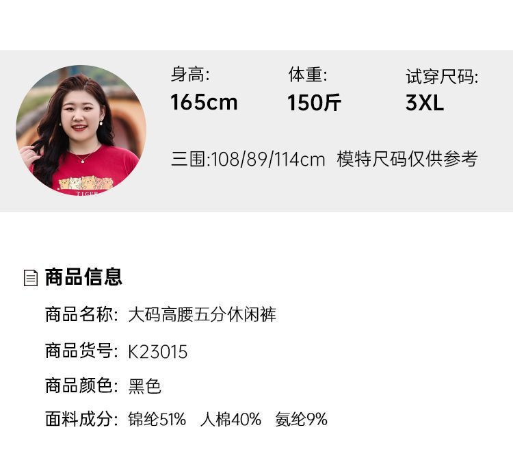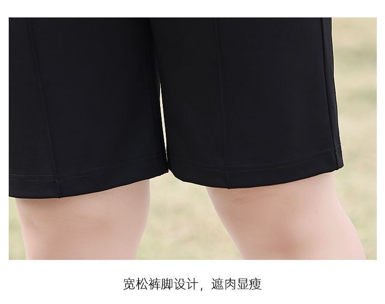 플러스 사이즈 높은 허리 탄성 5 점 캐주얼 바지 여성 여름 착용 통통한 자매 스트레이트 반바지 플러스 뚱뚱한 플러스 중간 바지 100.00kg