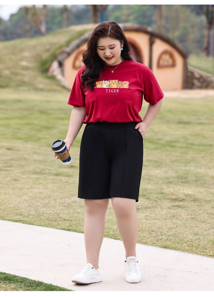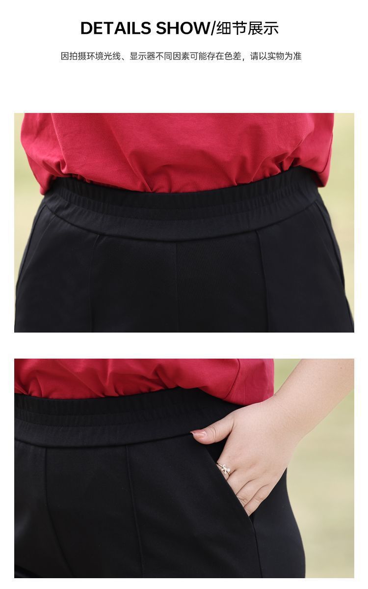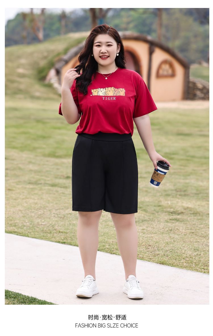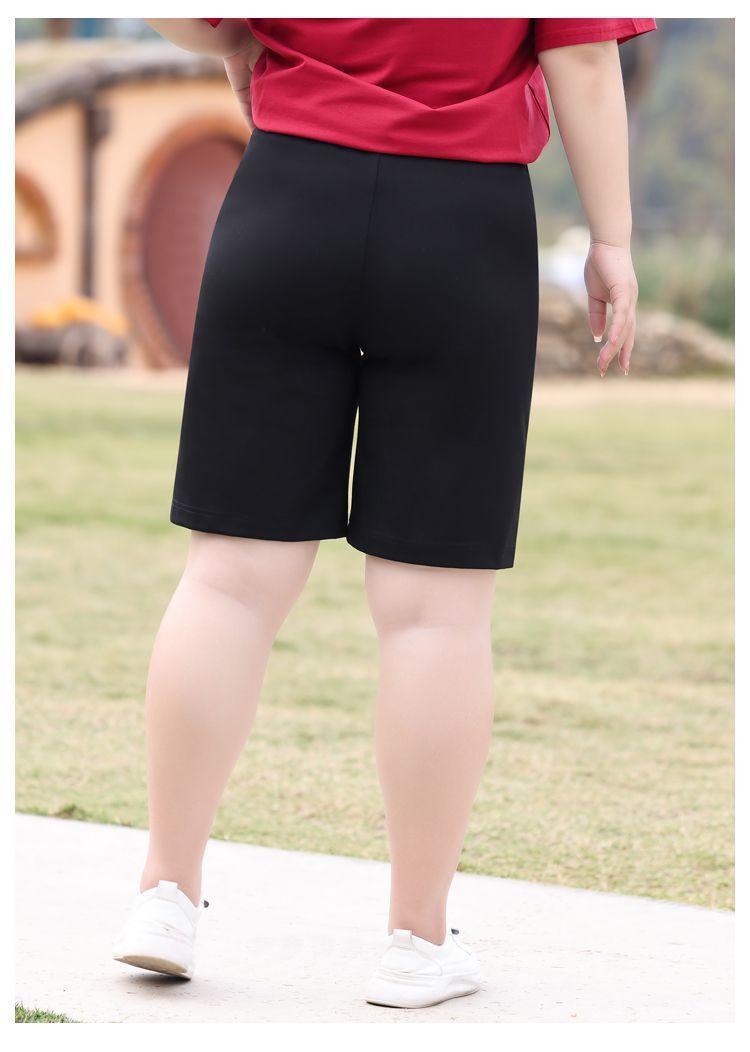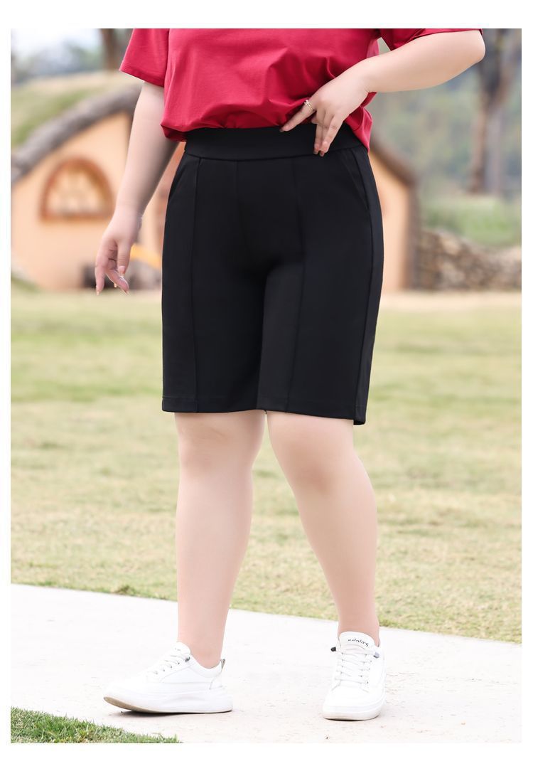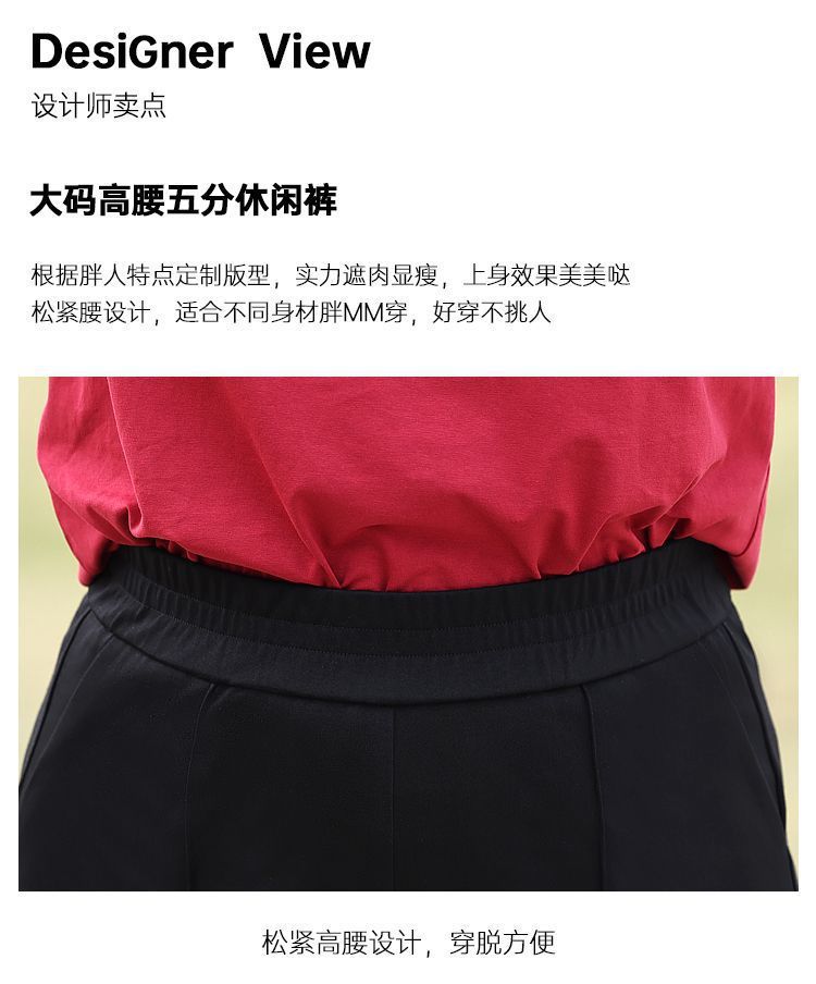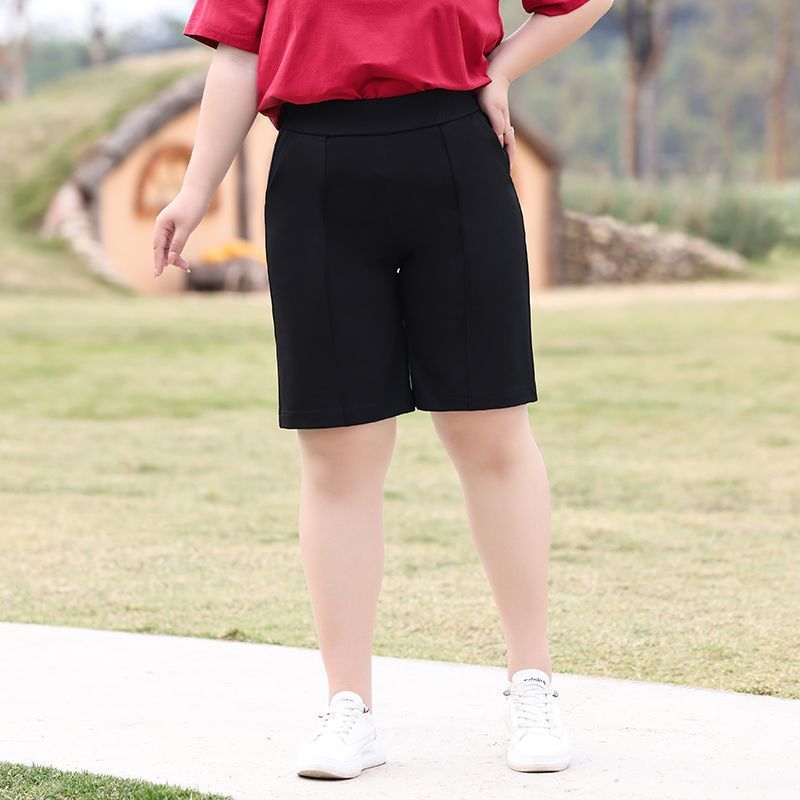 플러스 사이즈 높은 허리 탄성 5 점 캐주얼 바지 여성 여름 착용 통통한 자매 스트레이트 반바지 플러스 뚱뚱한 플러스 중간 바지 100.00kg스토어 가기