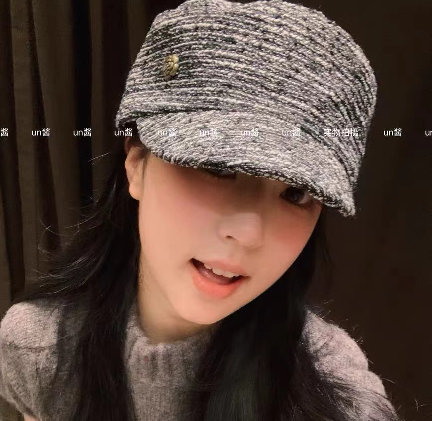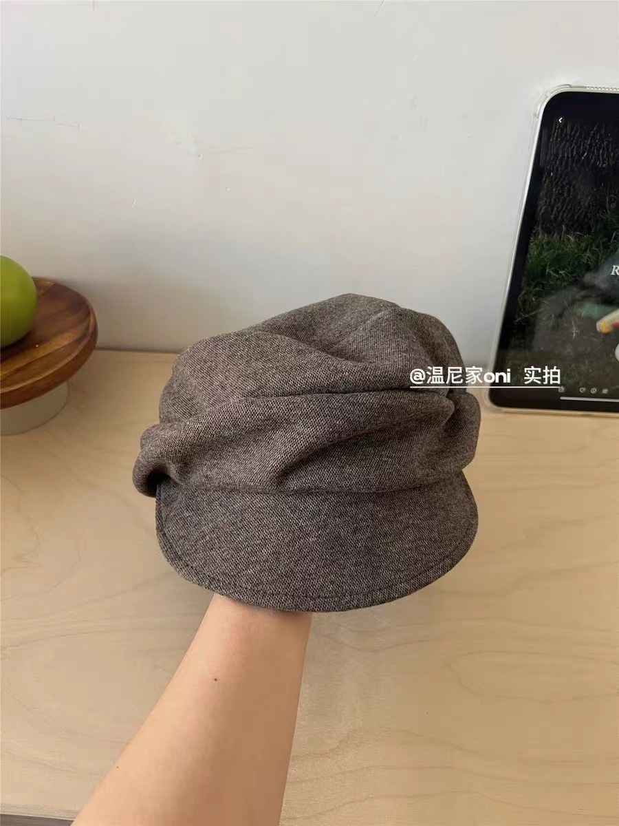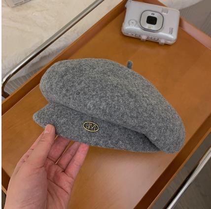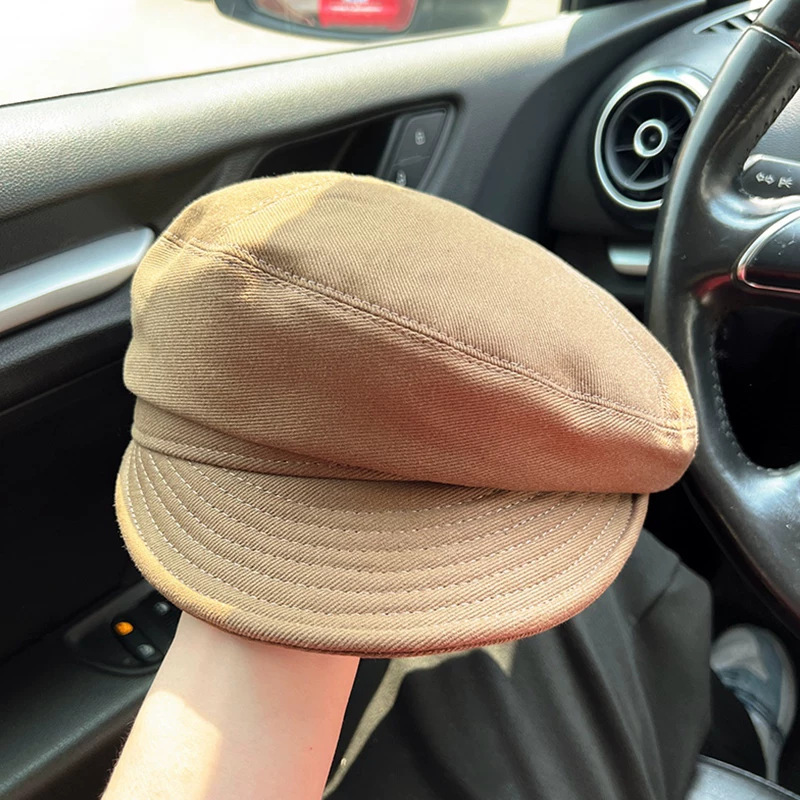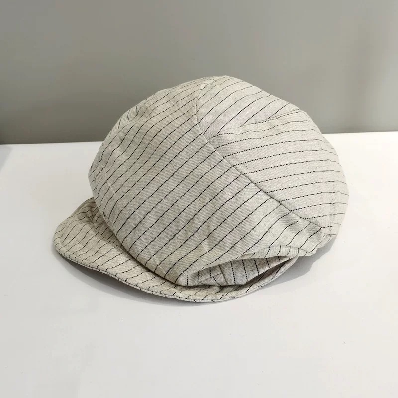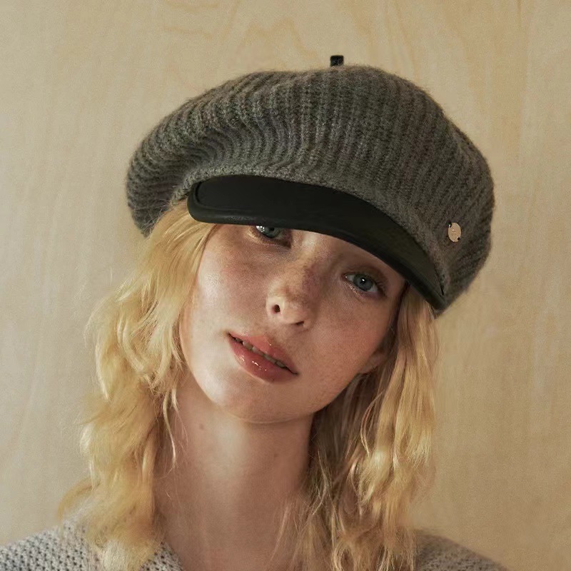 • 가죽 챙이 있는 굵은 줄무늬 베레모 그레이