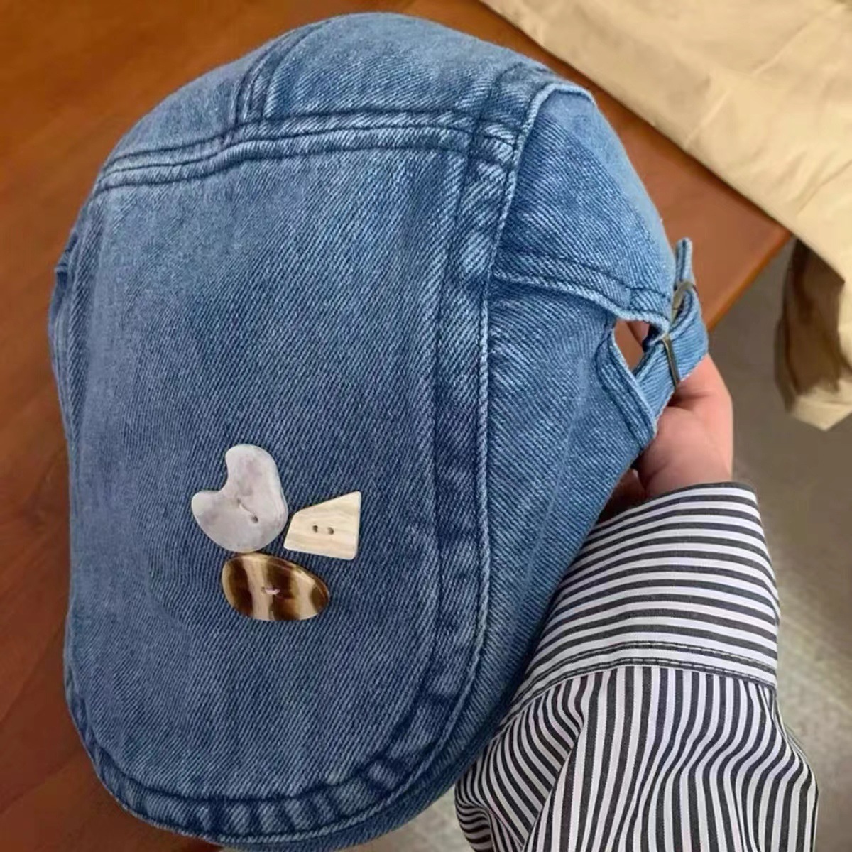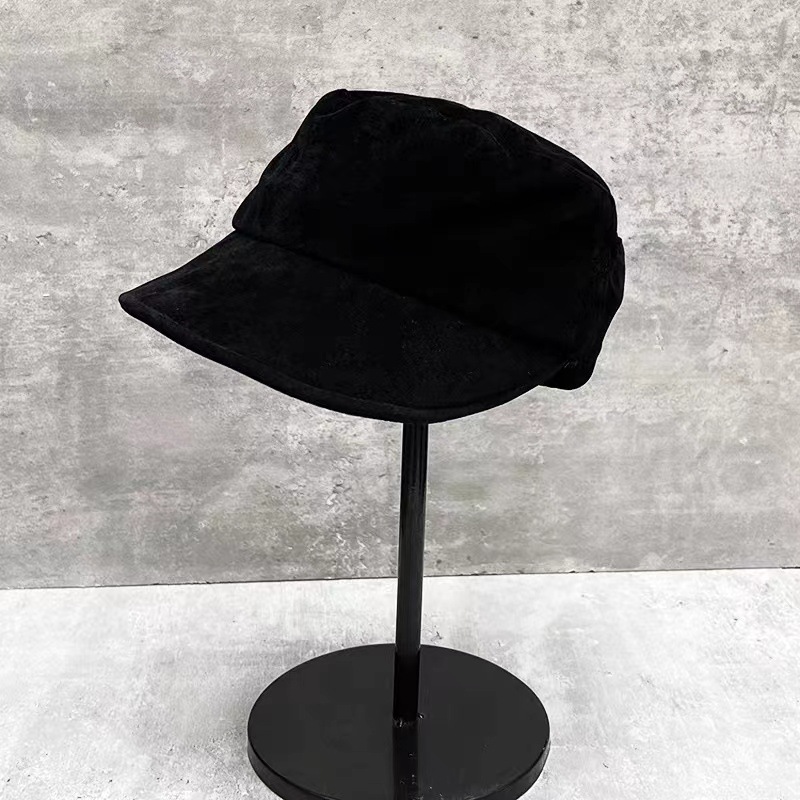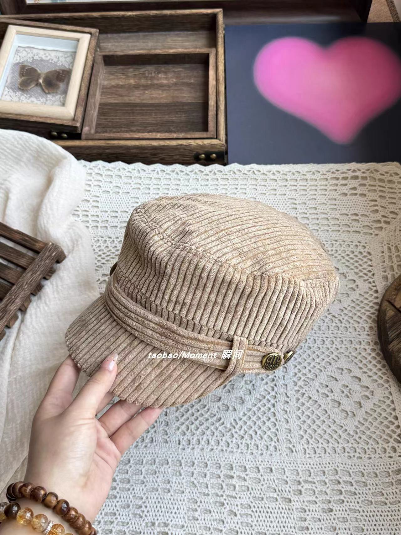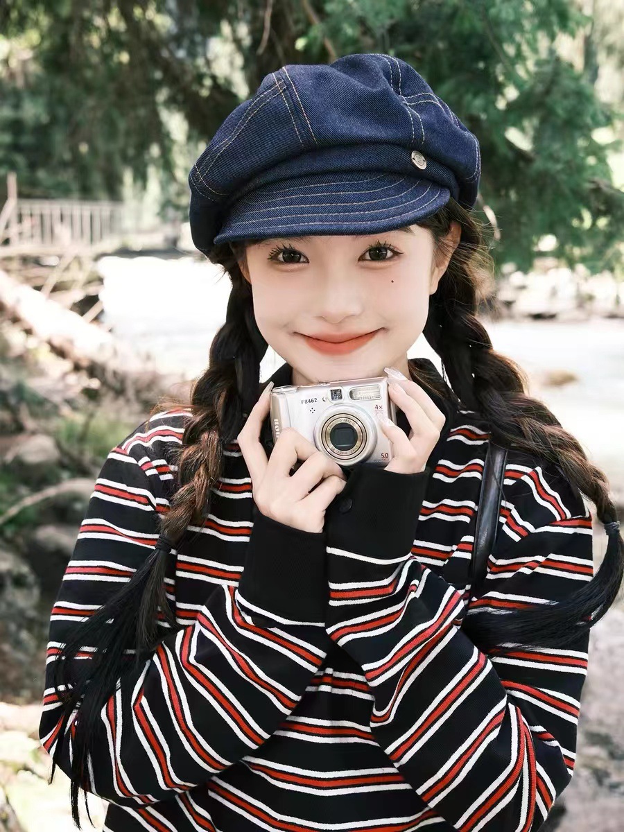 • 가죽 챙이 있는 굵은 줄무늬 베레모 그레이