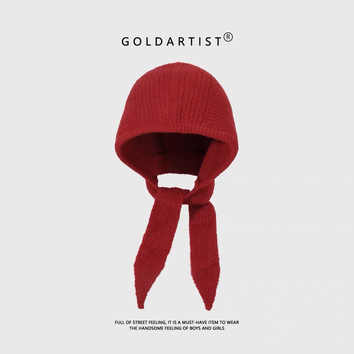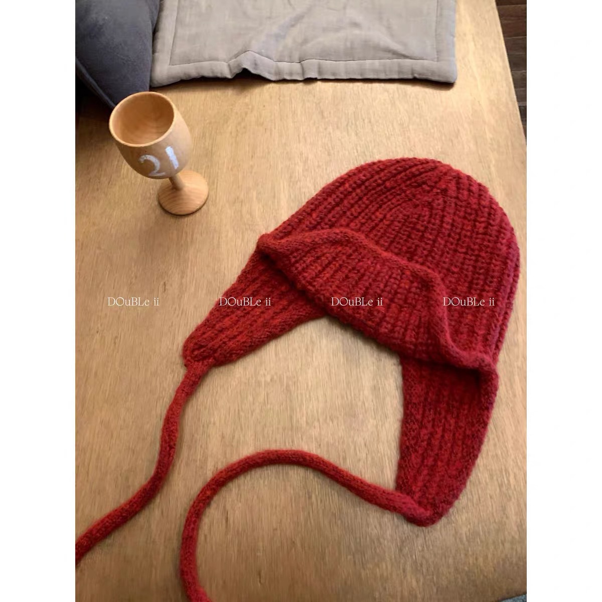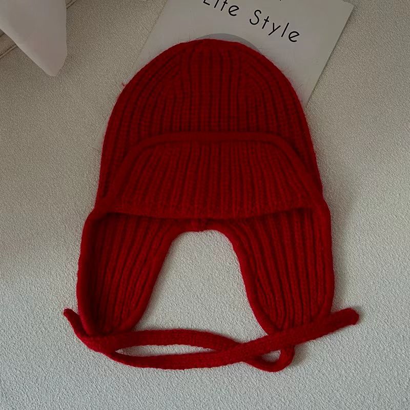 • 스카프와 모자가 하나로 통합된 니트 모자 레드