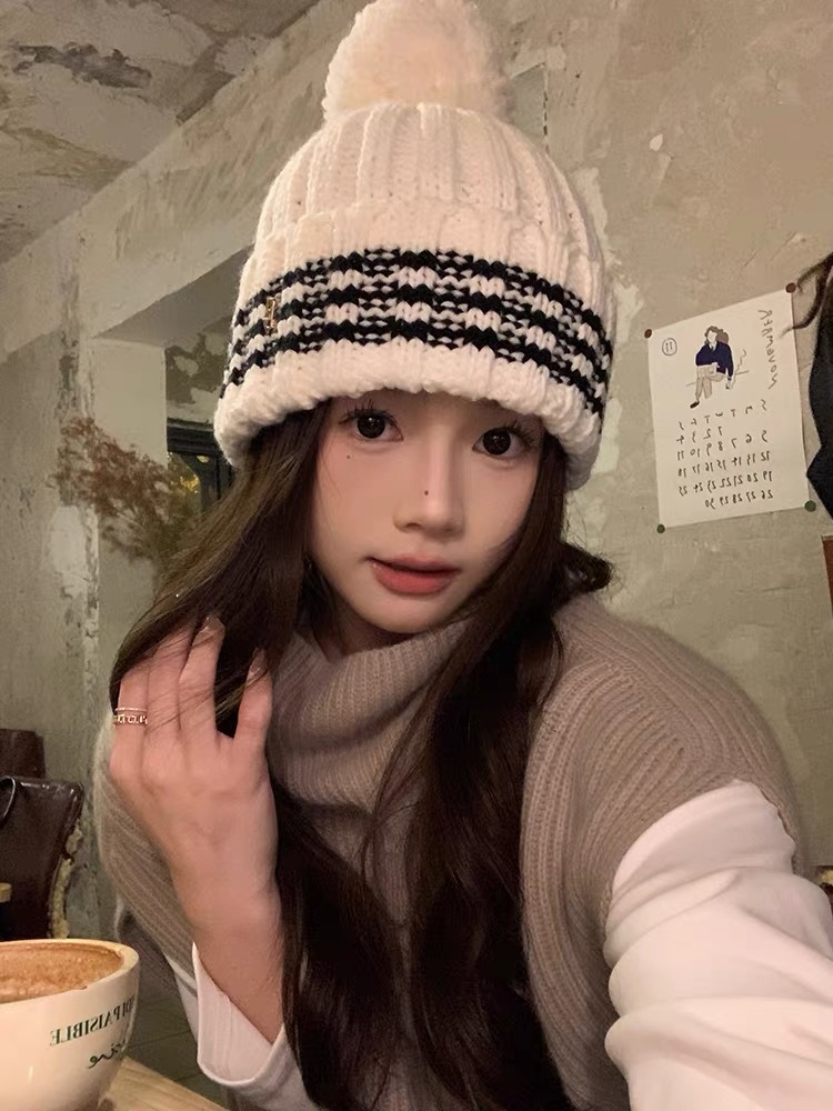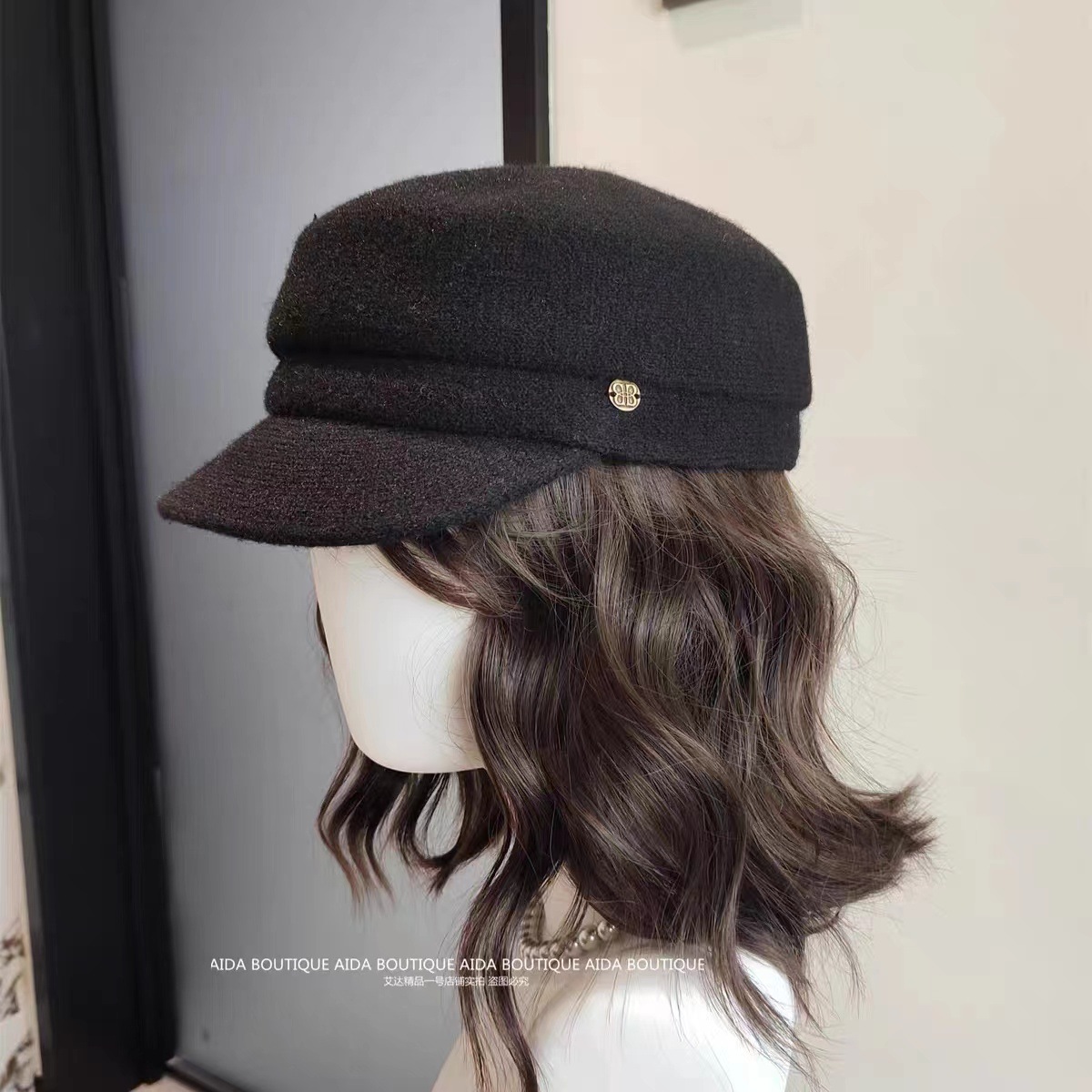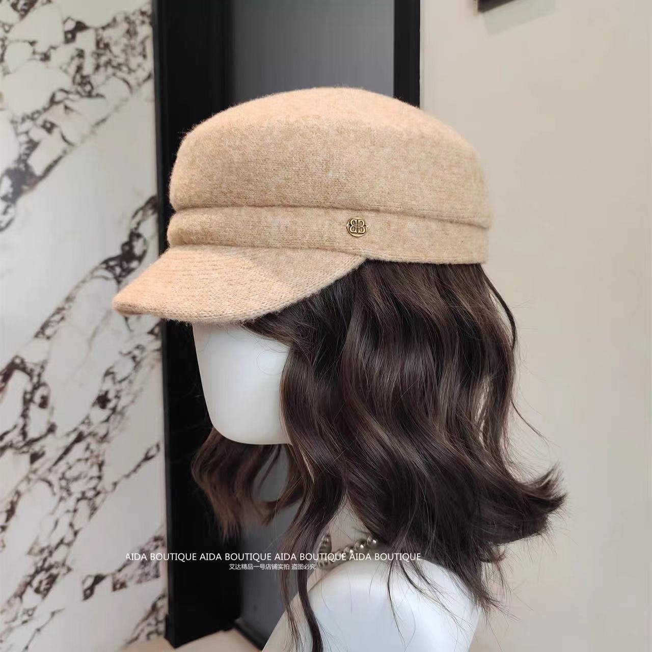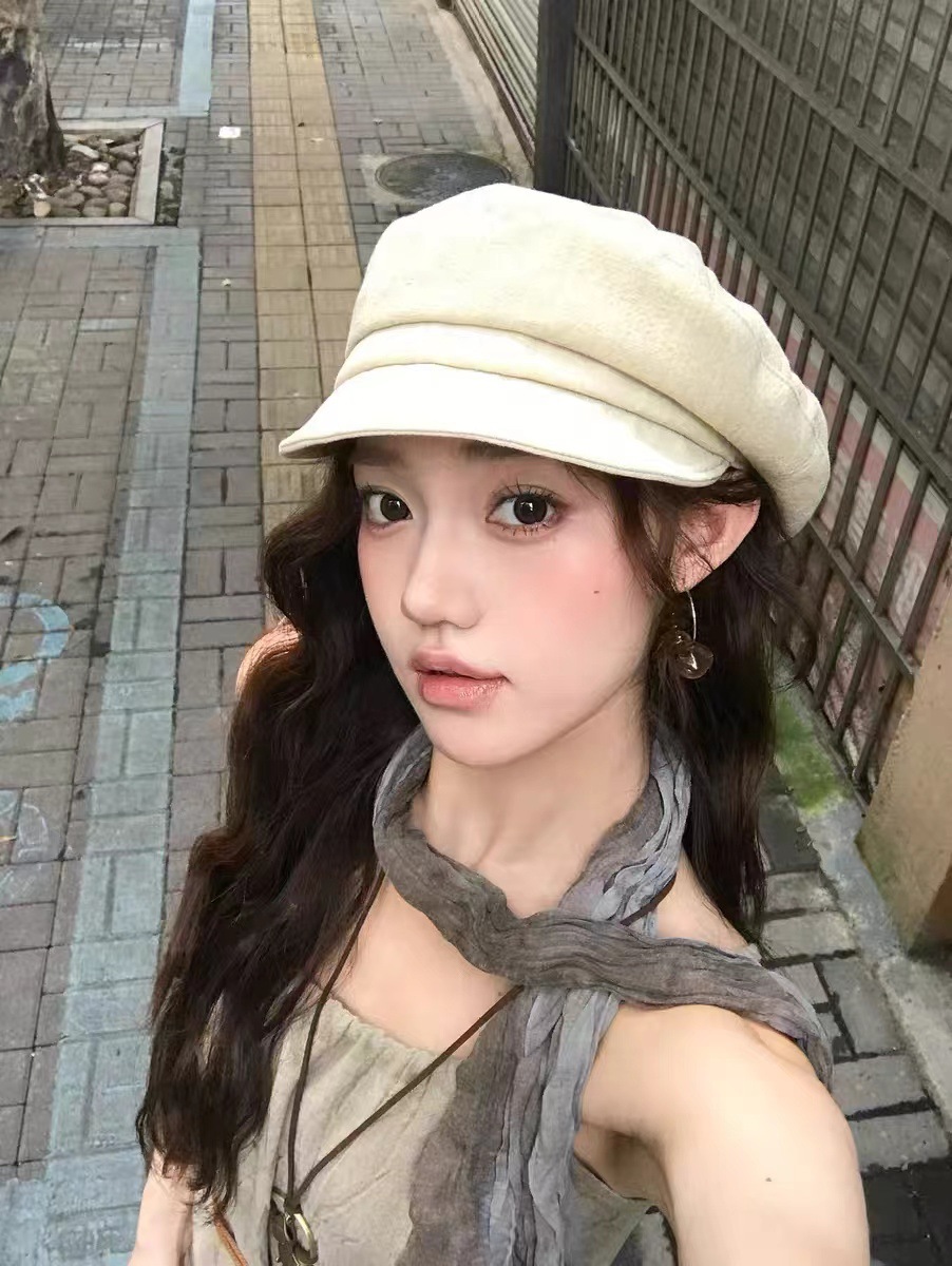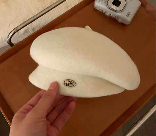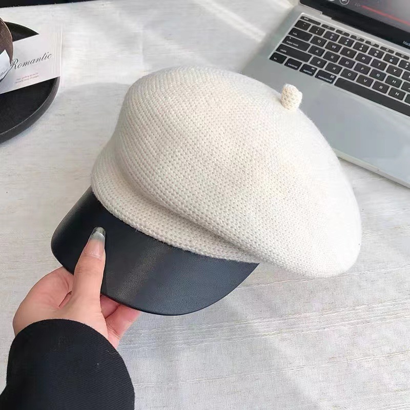 • 가죽 챙이 있는 두꺼운 줄무늬 베레모 오프화이트