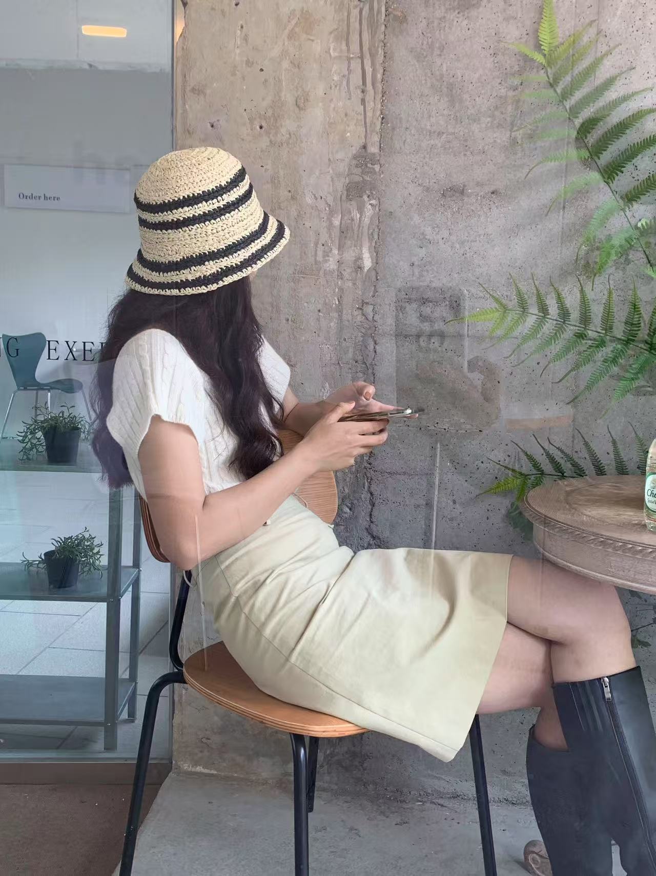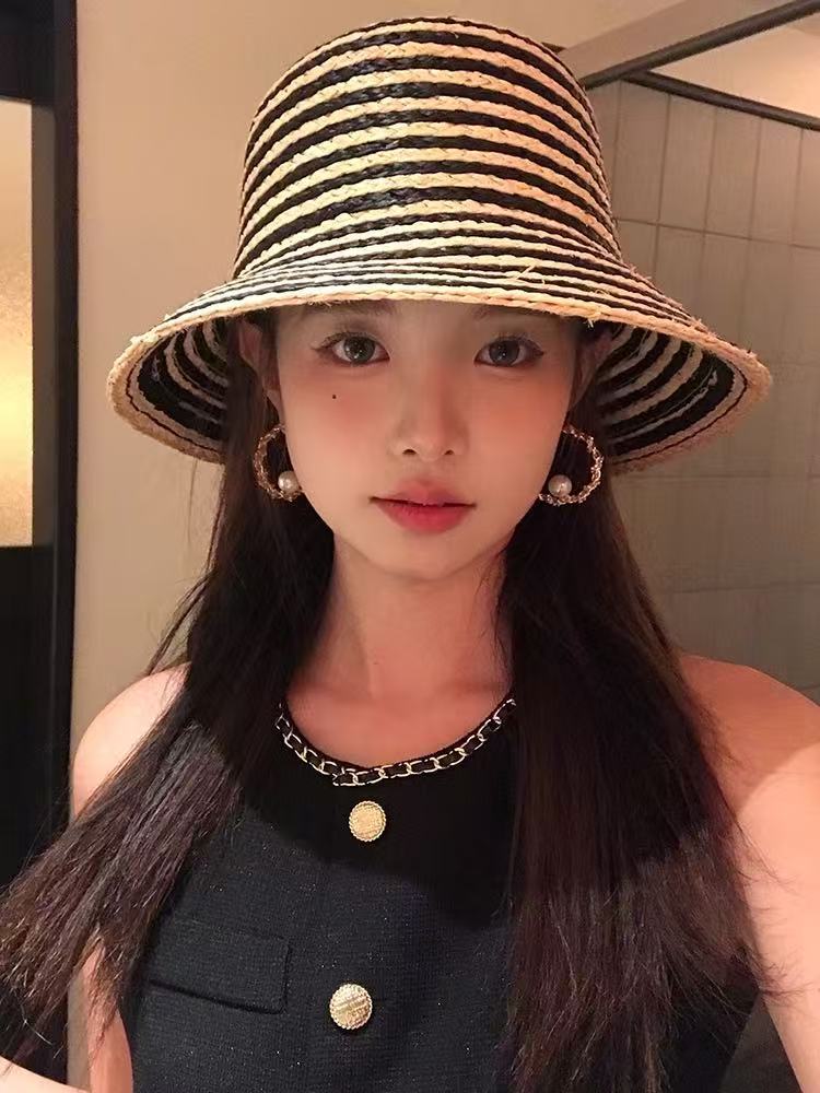 • 스트라이프 크로셰 밀짚모자 어부 베이지