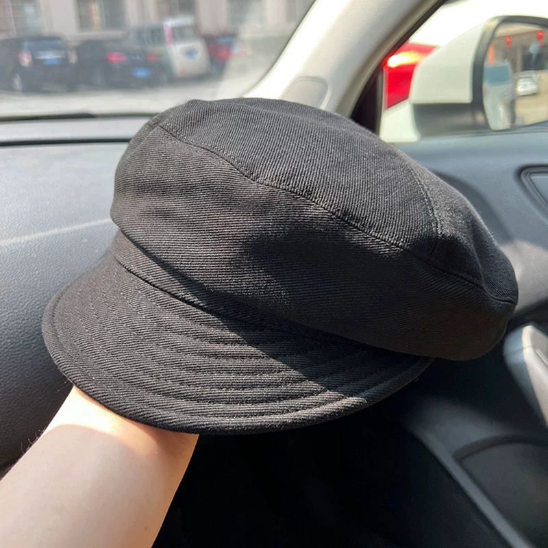 • 흰색 줄무늬 뉴스보이 모자 검정색