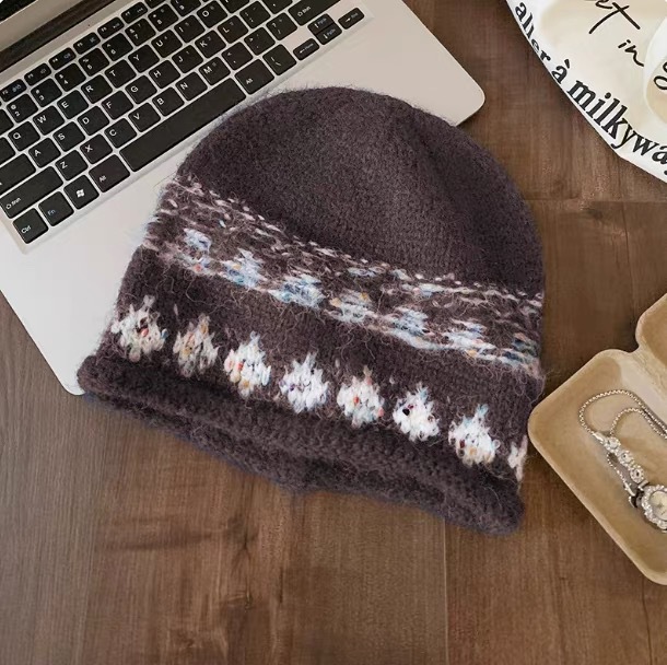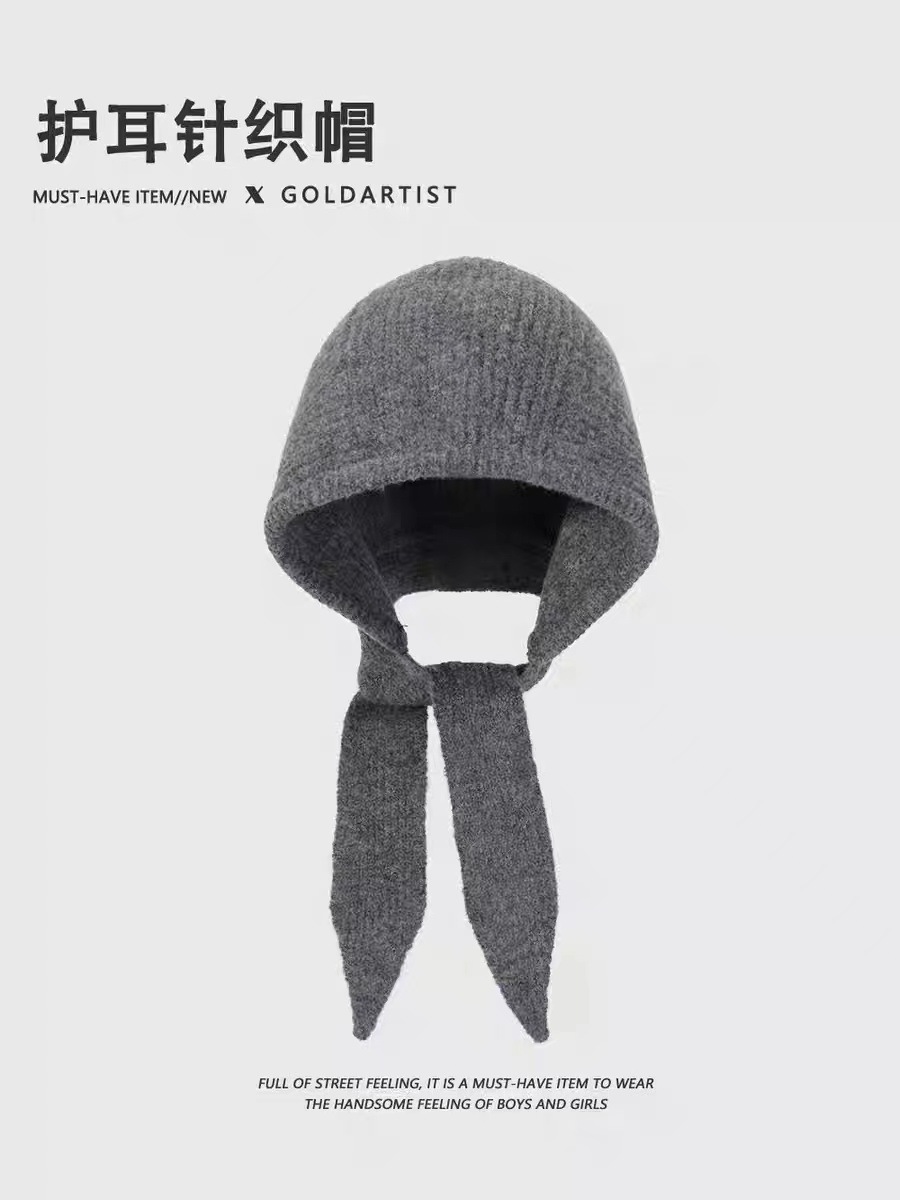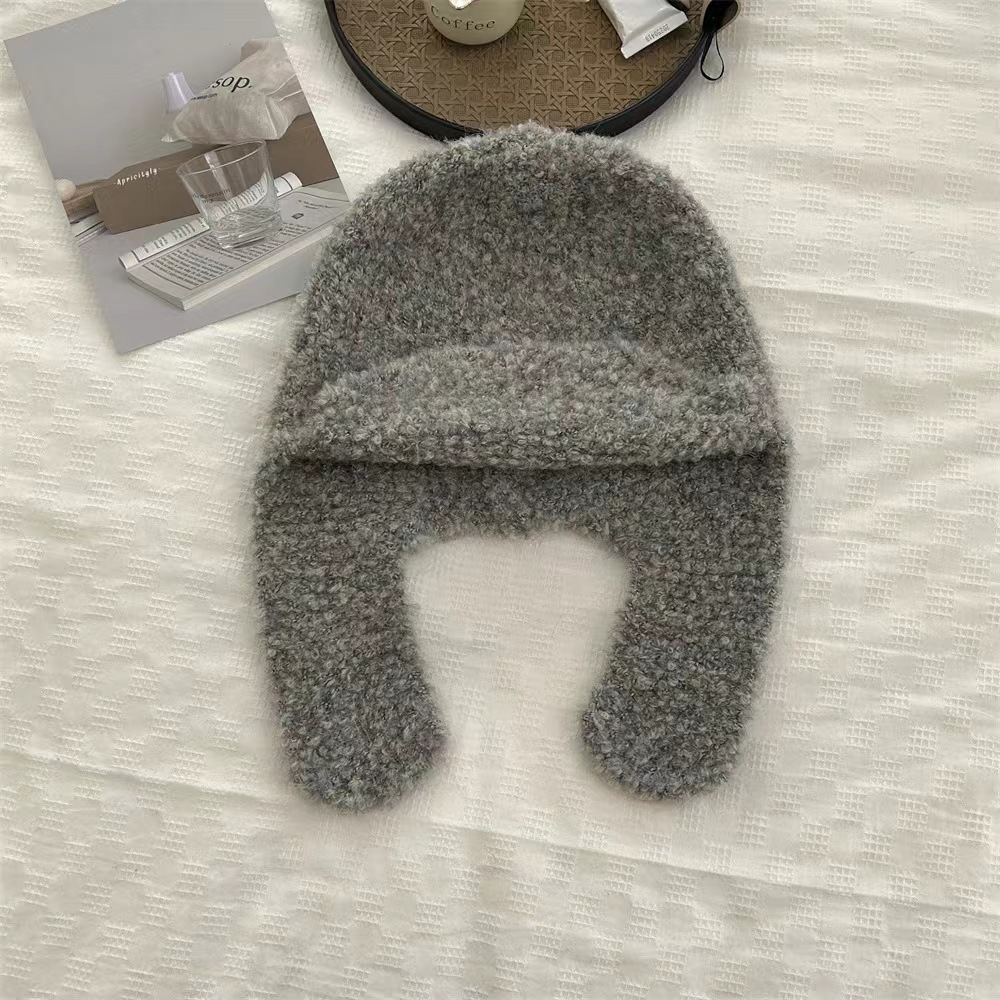 • 스카프와 모자가 하나로 통합된 니트 모자 그레이