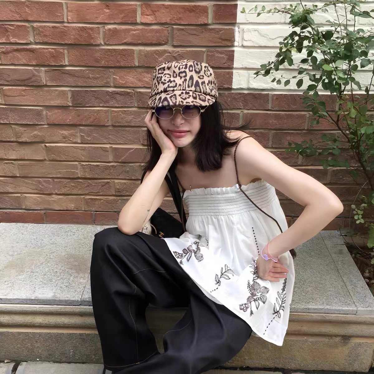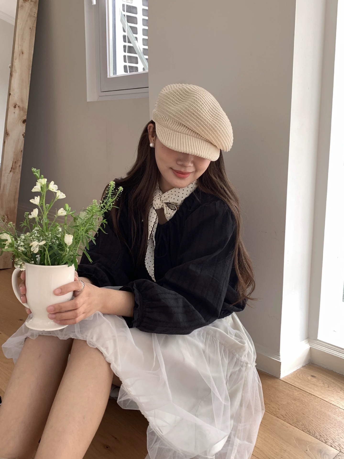 • 검은 줄무늬 뉴스보이 모자 흰색