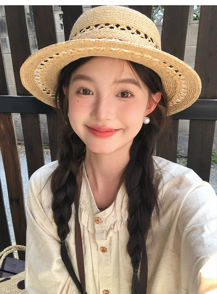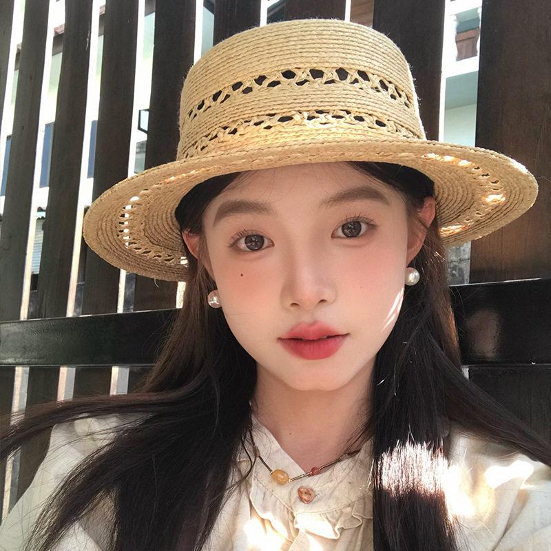 하이 퀄리티 ~ 라피 잔디 중공 플랫 탑 밀짚 모자 어린이 2025 년 새 여름 탑 모자스토어 가기