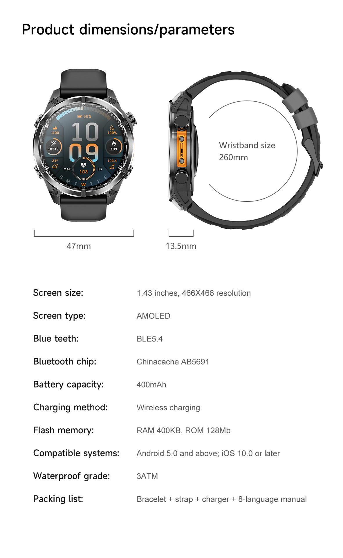 국경 간 HD300 금속 바디 나침반 고도 LED 손전등 야외 스포츠 스마트 시계 무선 충전스토어 가기