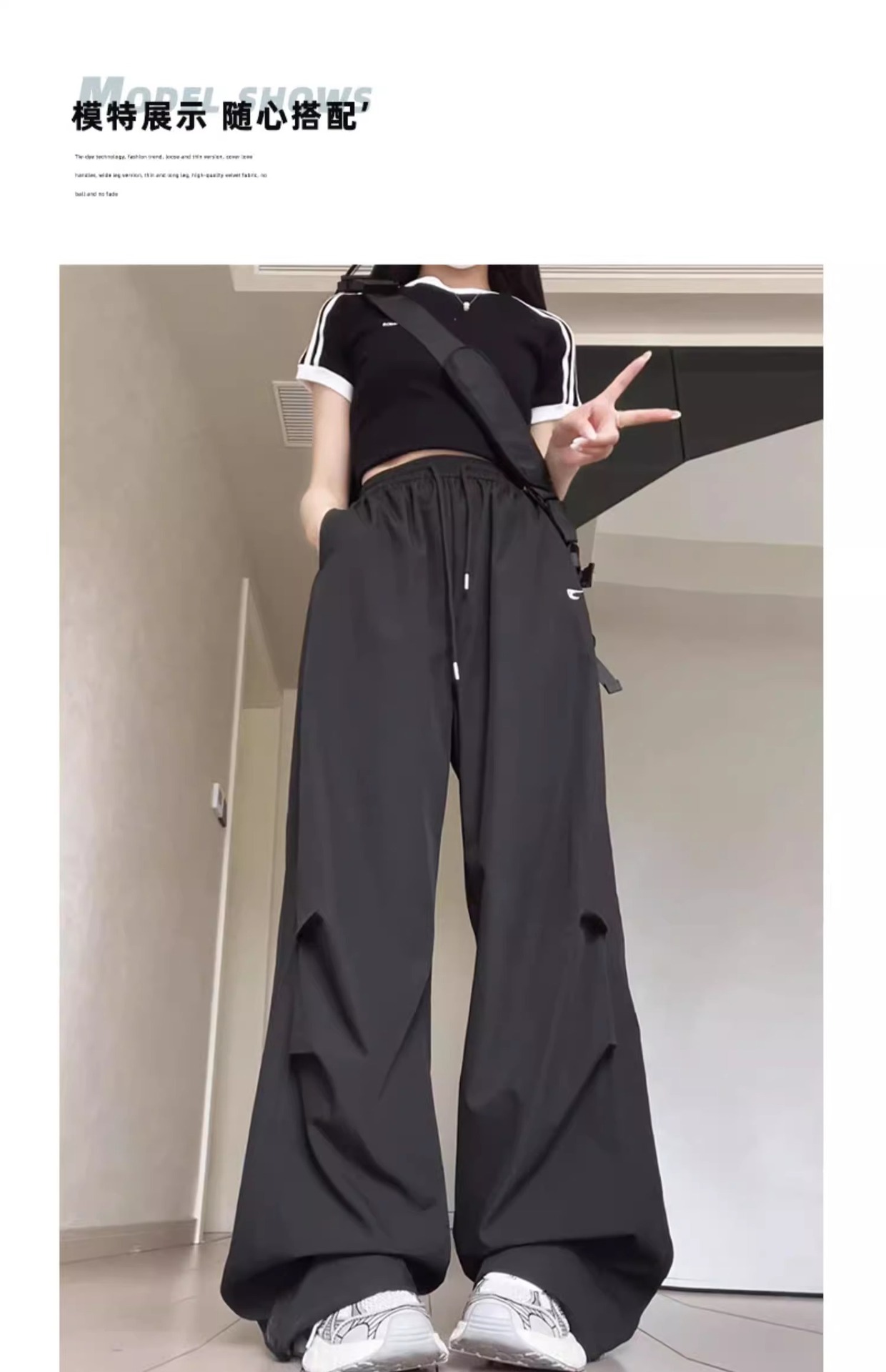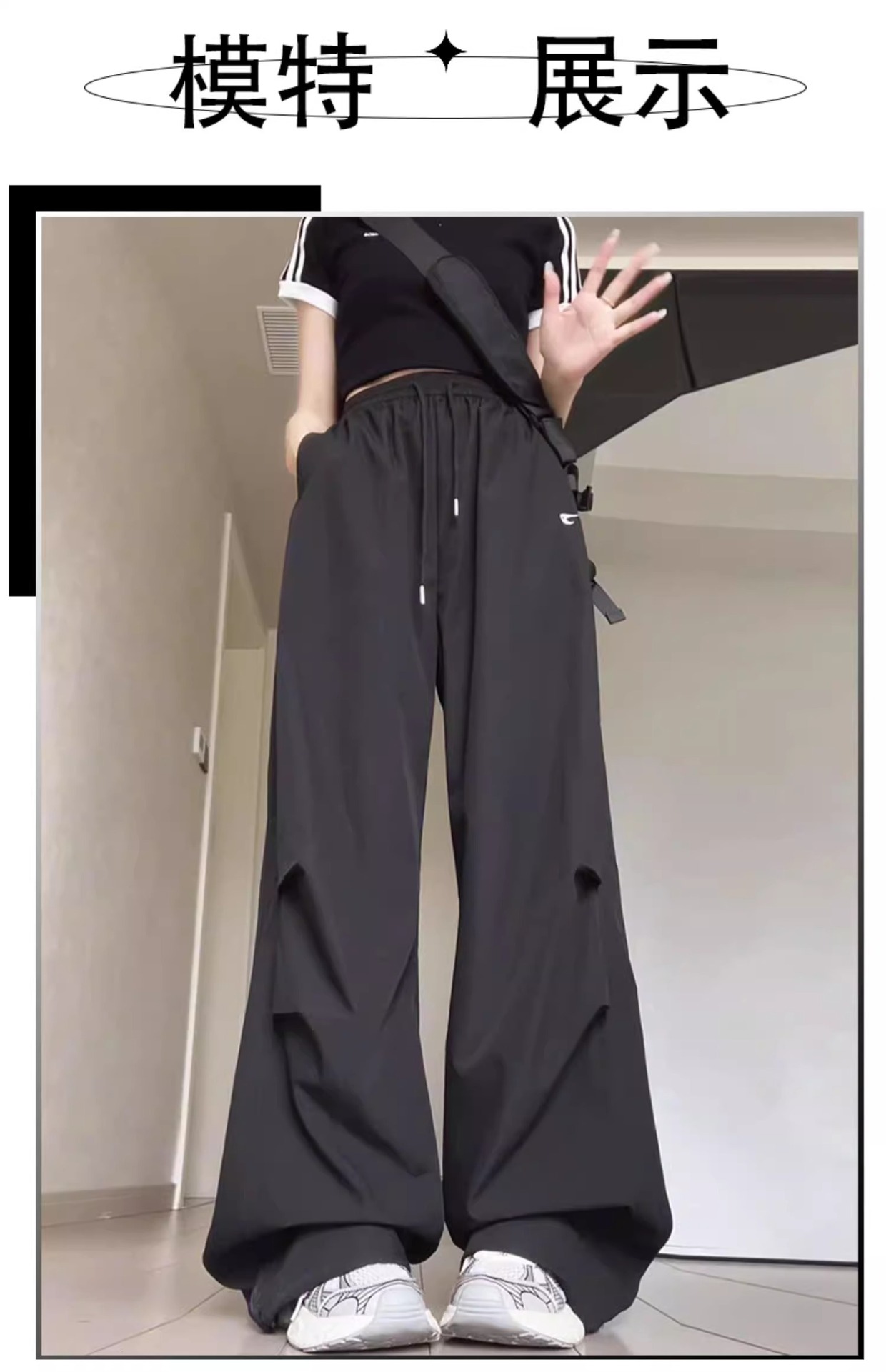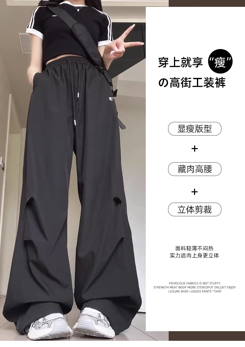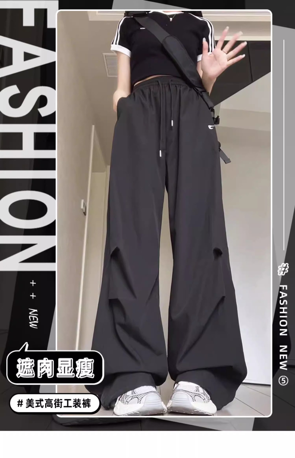 블랙 아메리칸 레트로 툴링 바지 2025 봄 새로운 얇은 높은 허리 더미 슬림 편안한 스포츠 바지