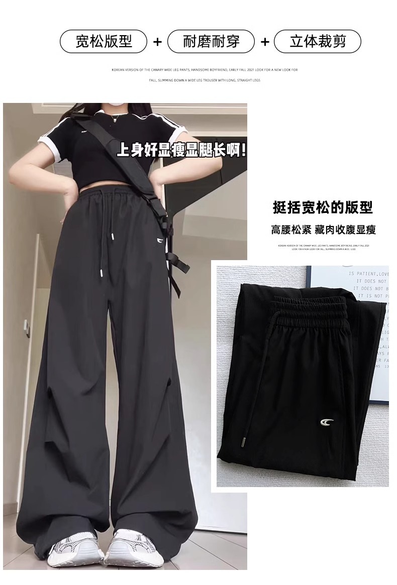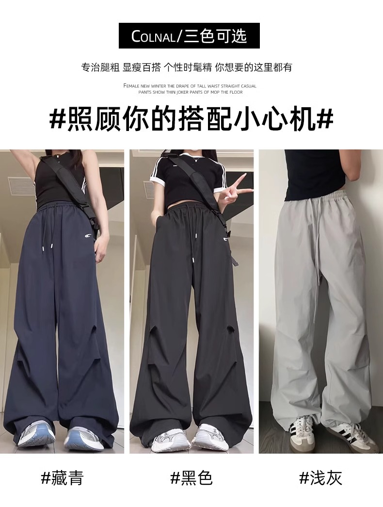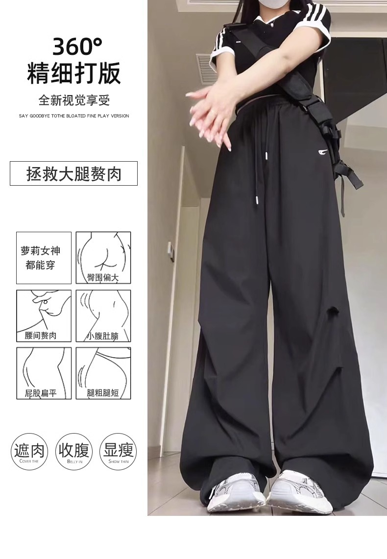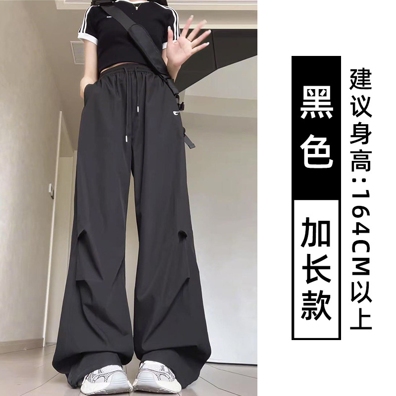 블랙 아메리칸 레트로 툴링 바지 2025 봄 새로운 얇은 높은 허리 더미 슬림 편안한 스포츠 바지