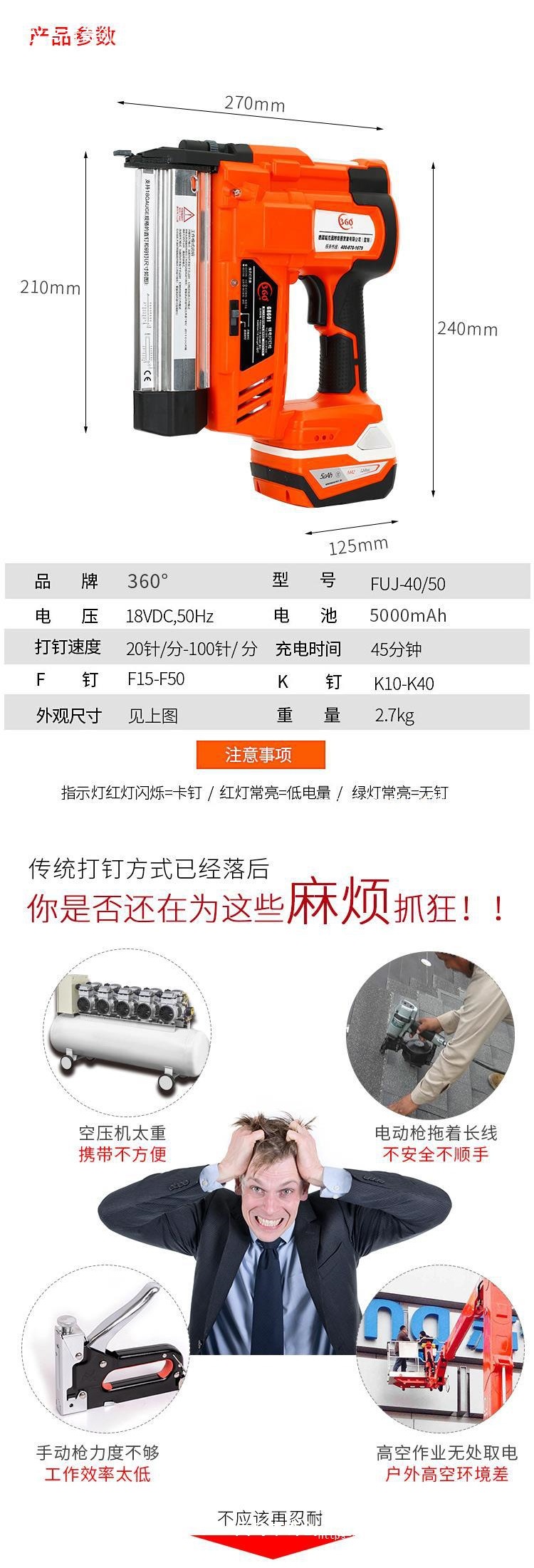 무선 전기 네일 건, 리튬 충전식 F50 스트레이트 네일 건, 코드 네일 건, 이중 목적 목공 및 장식 도구
