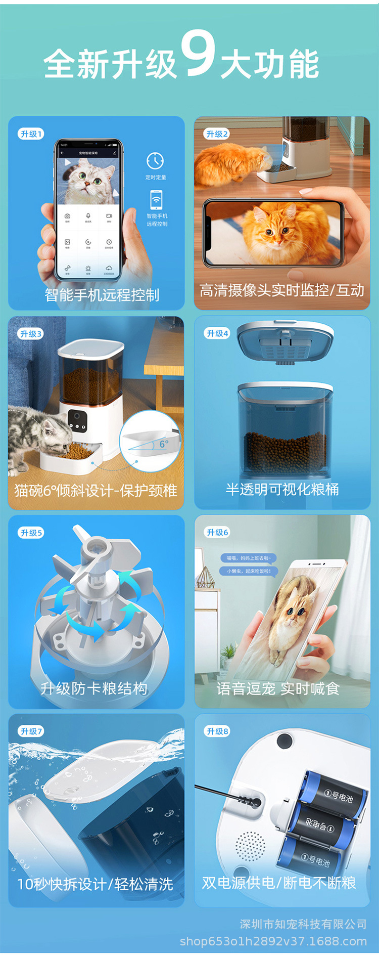 대용량 애완동물 자동 급식기, 지능형 타이밍 및 정량, Wi-Fi 비디오 애완동물 급식기, 국경 간스토어 가기