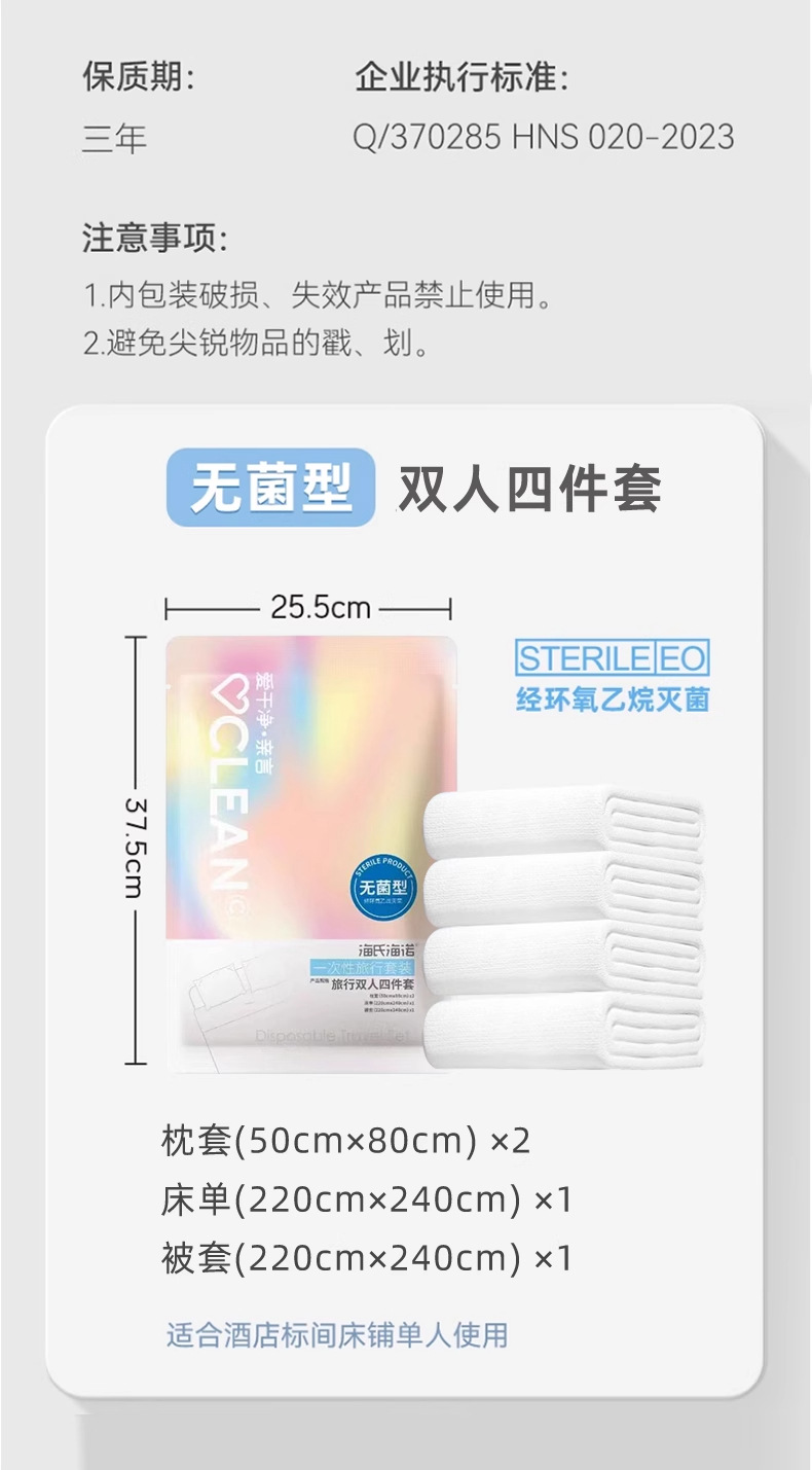 하이시 하이노 일회용 부드러운 목욕 타월 이불 커버 베개 커버 휴대용 무균 방오 여행 세트 더블 4종 세트