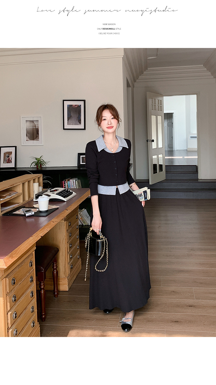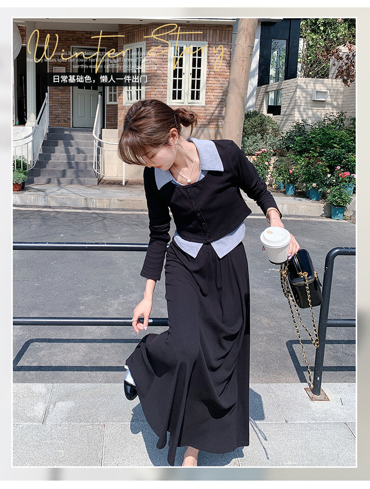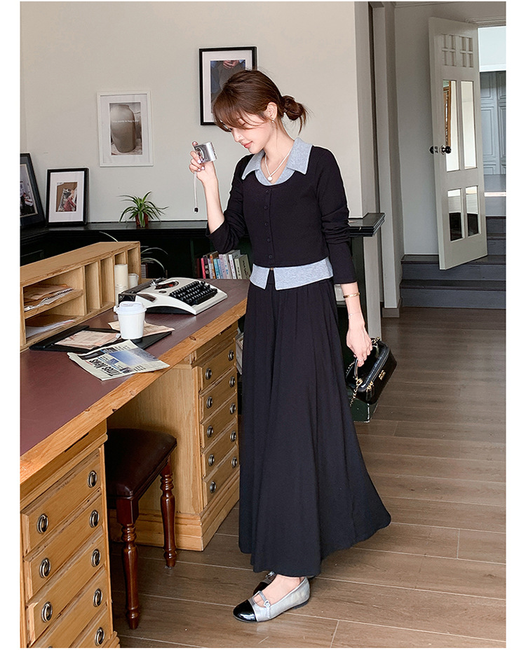 [멩메이] 25 봄 스타일 패션 세트 한국판 느슨한 디자인 카디건 코트 스커트 3 피스 세트
