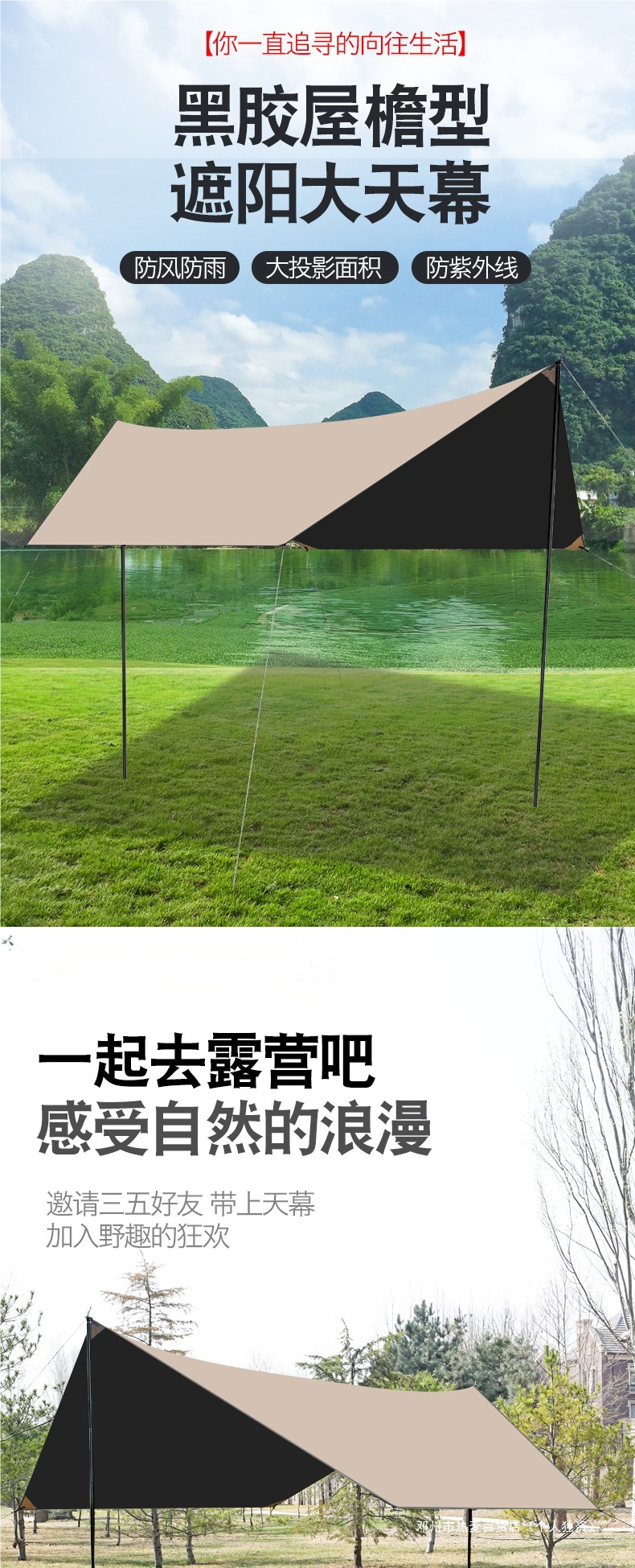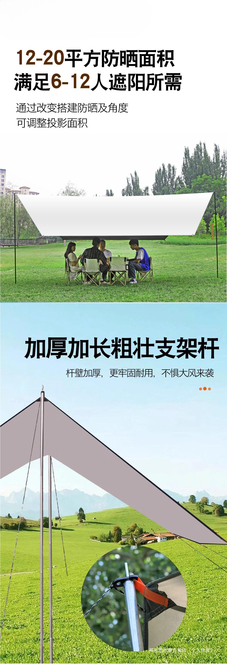 뜨거운 밀 야외 대형 실버 코팅 차양 휴대용 야외 자외선 차단제 두꺼운 검은 접착제 4 극 캐노피 캠핑 텐트