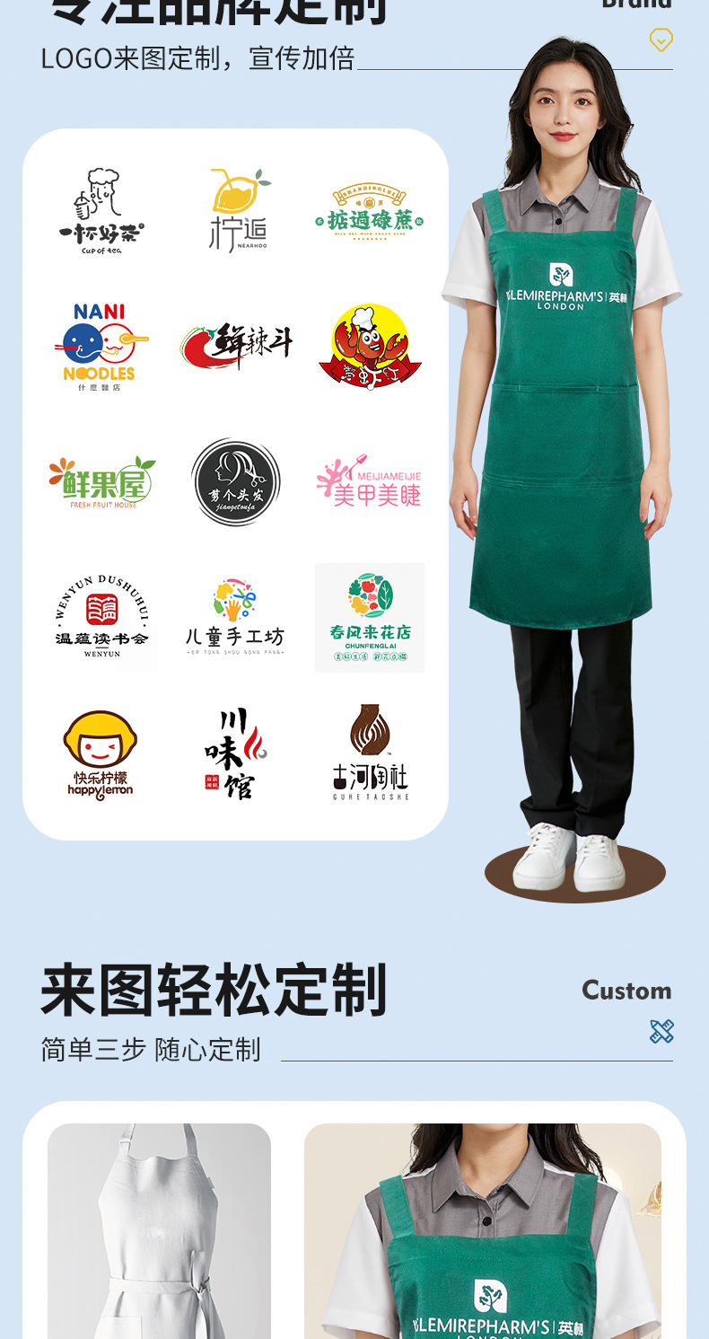 케이터링 밀크티 숍 작업복 프린트 웨이터 조끼 주방 가정용 작업복을 위한 두꺼운 방수 앞치마 맞춤 지원스토어 가기