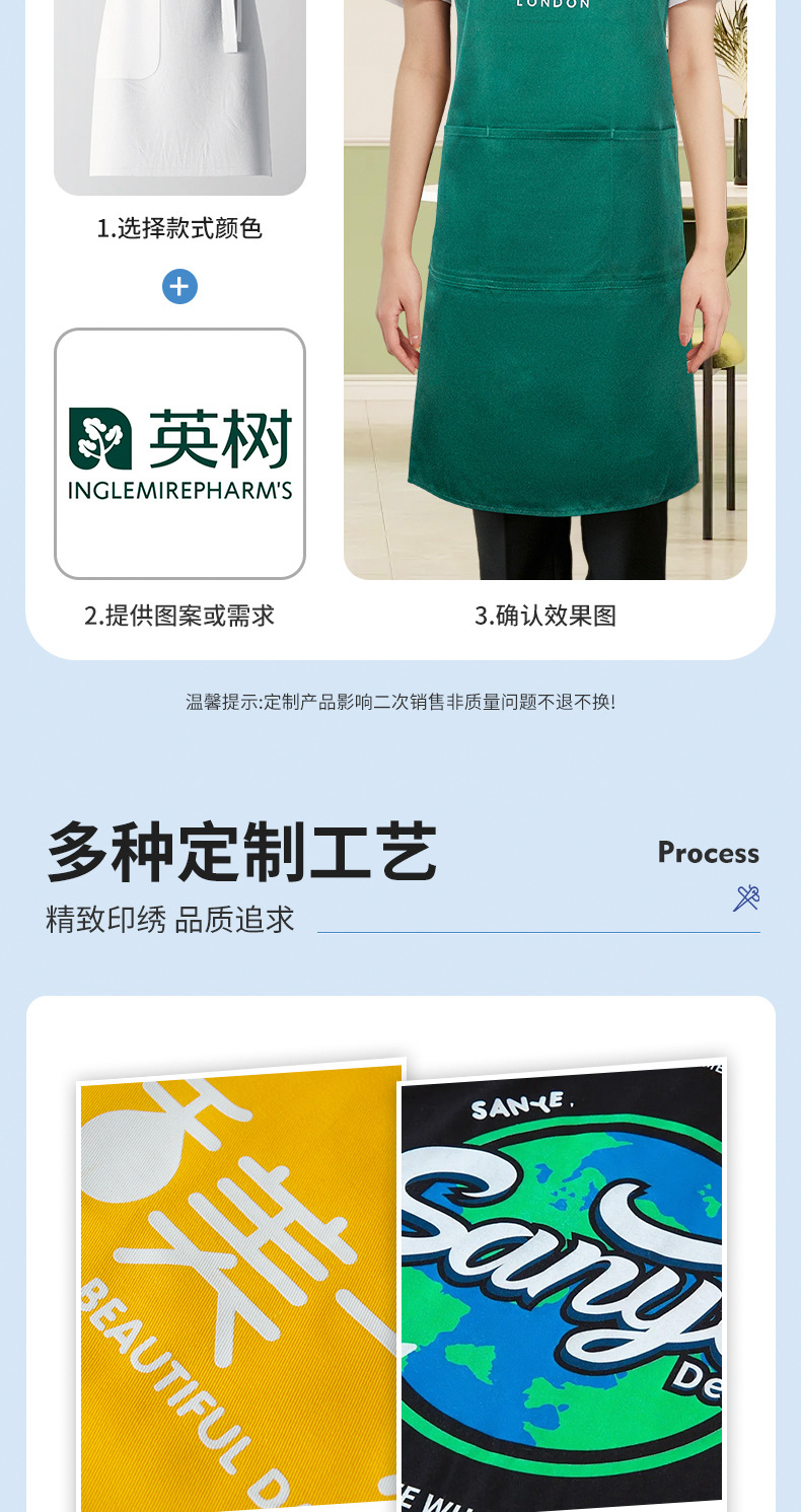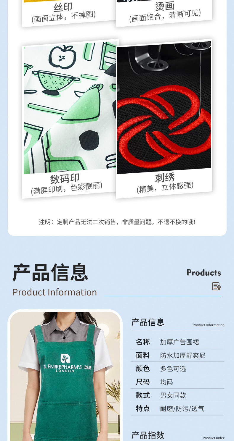 케이터링 밀크티 숍 작업복 프린트 웨이터 조끼 주방 가정용 작업복을 위한 두꺼운 방수 앞치마 맞춤 지원