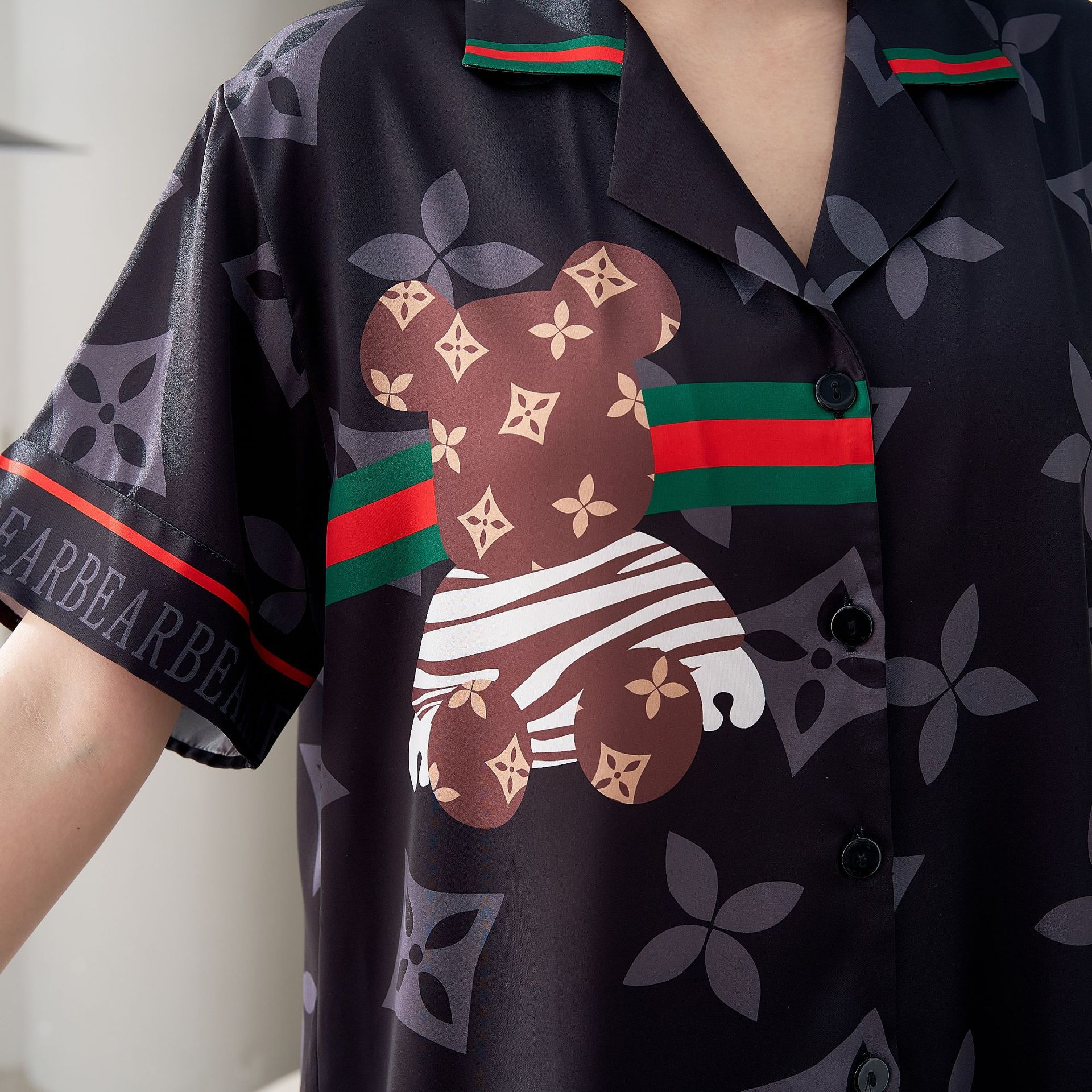 • 만화 곰 더블 짧은 두 조각 세트 여성