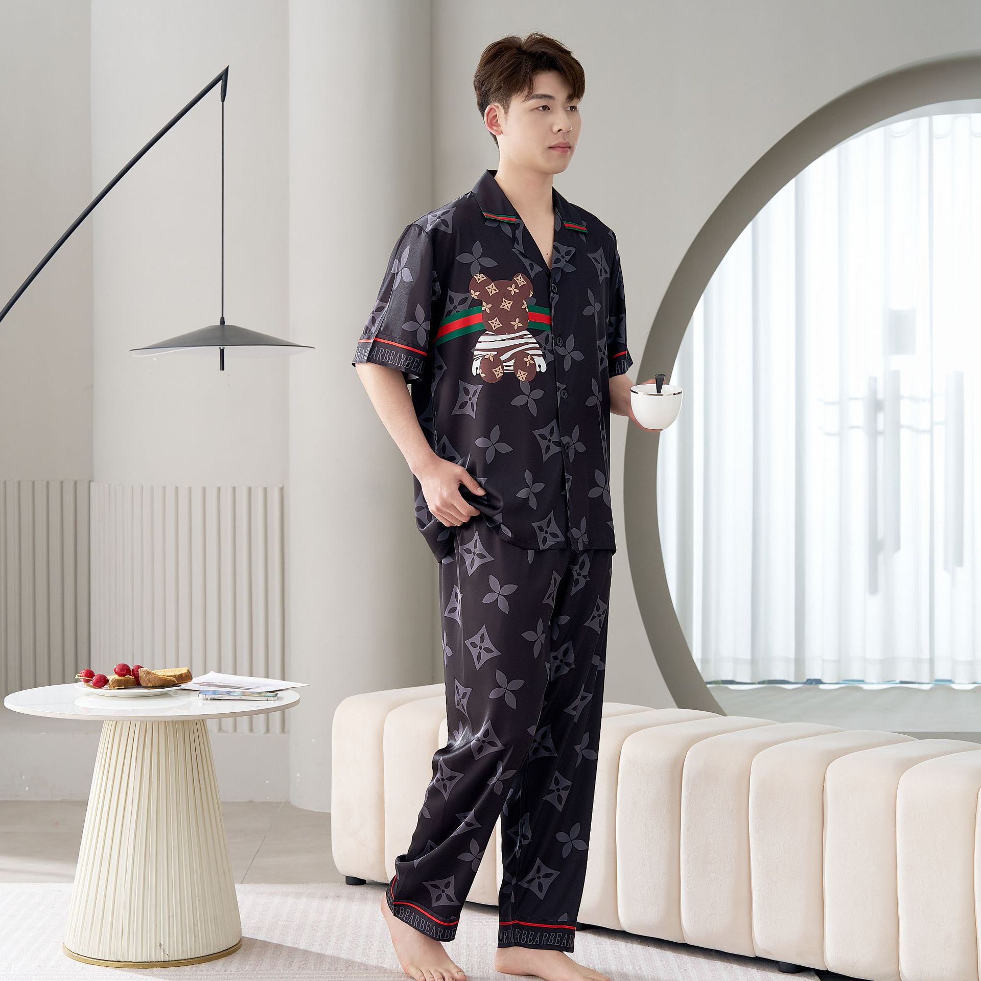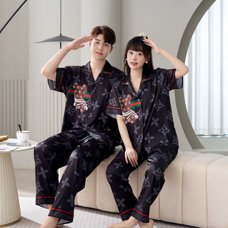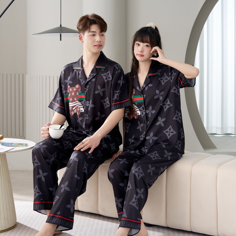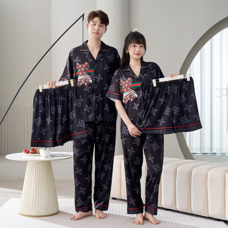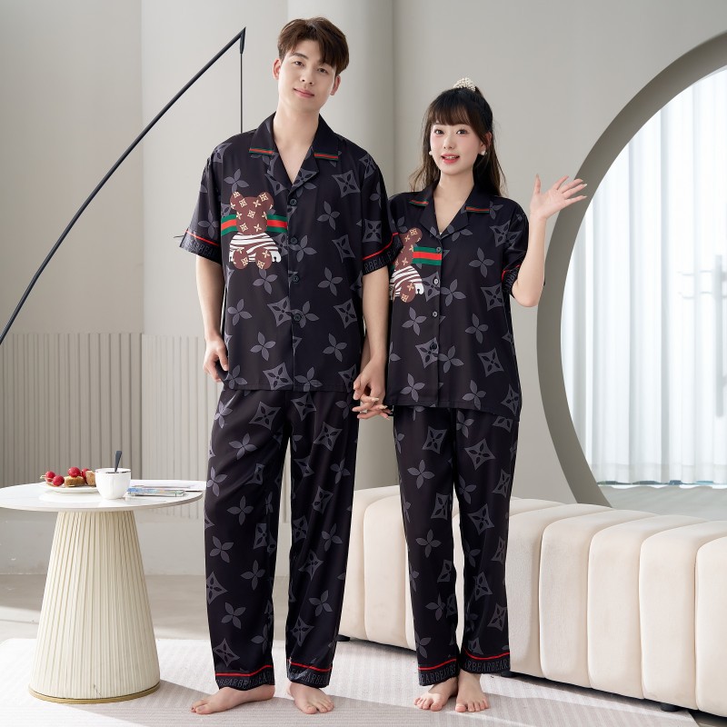 남성용 및 여성용 목욕 가운 잠옷, 대형 얇은 양복, 반팔 반바지 및 바지, 봄 여름 얼음 실크 커플 홈웨어스토어 가기