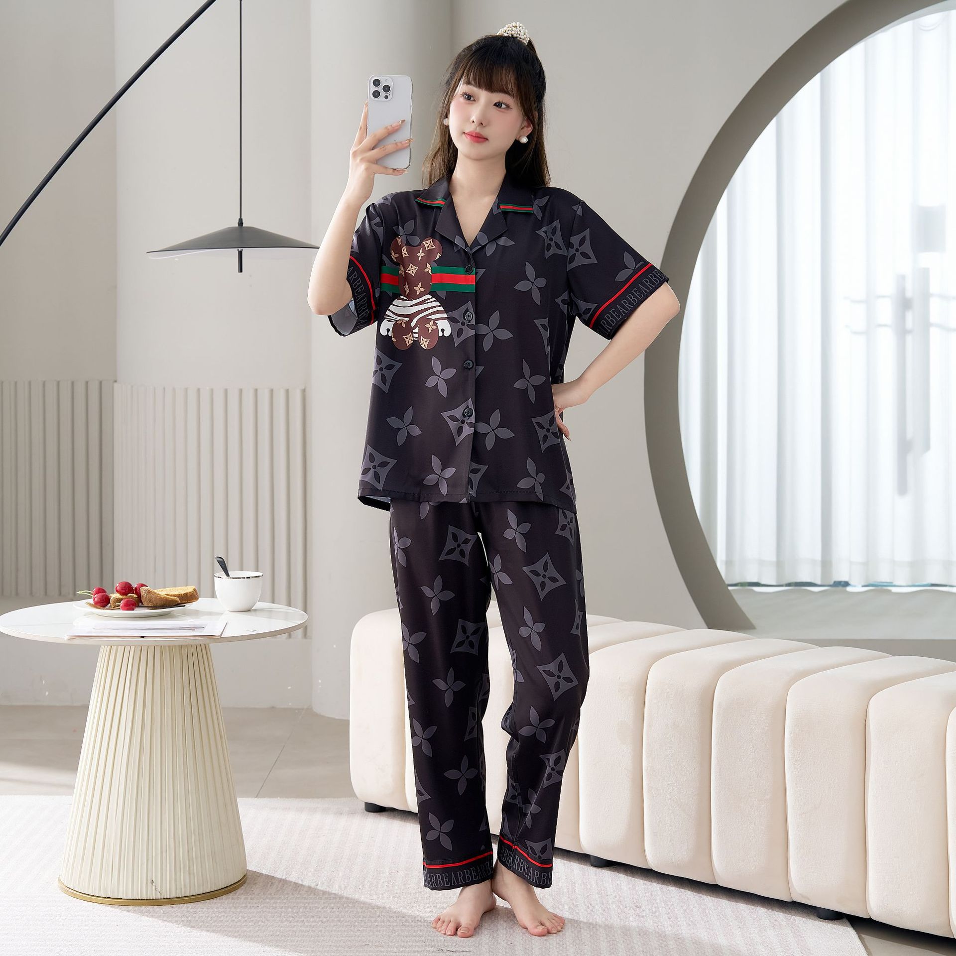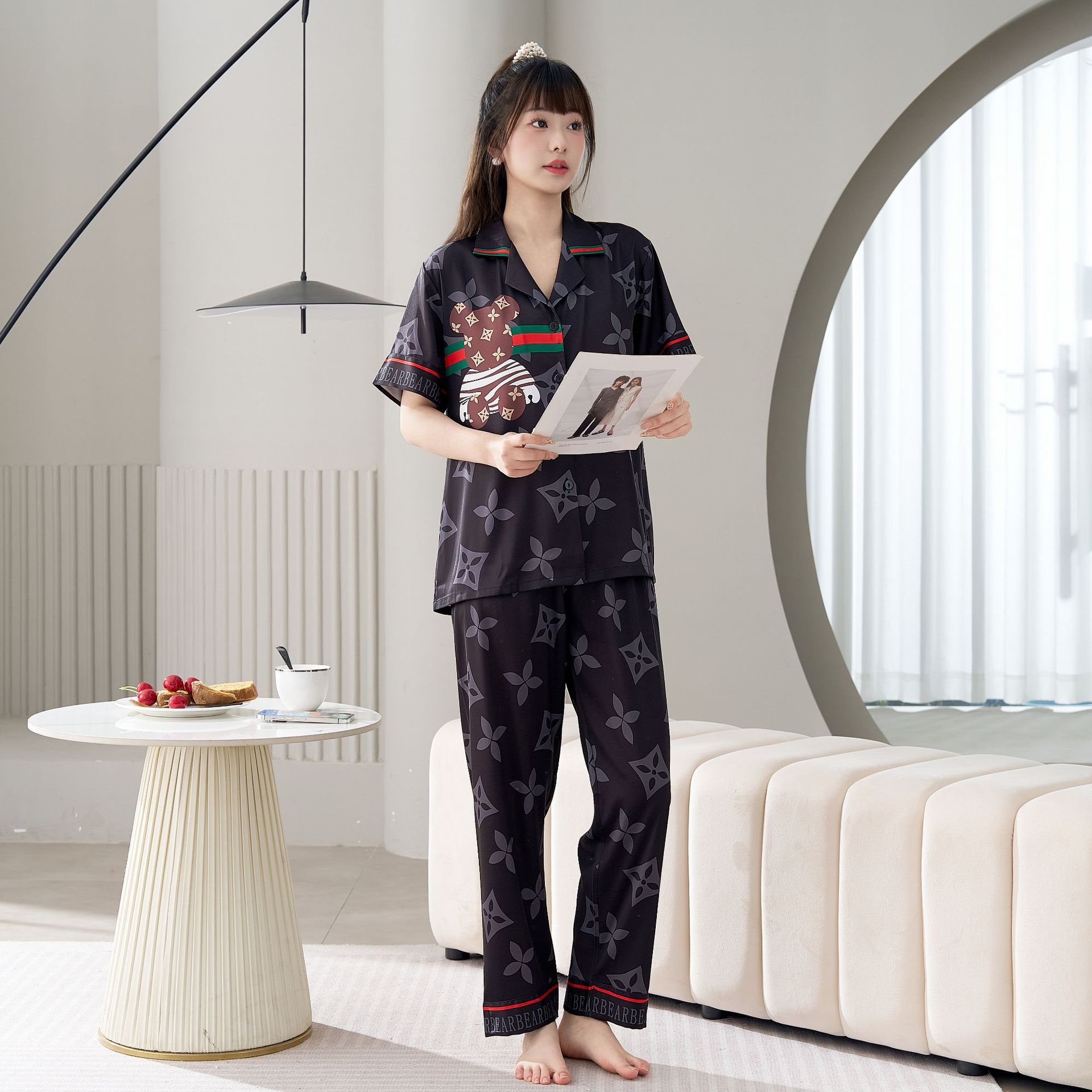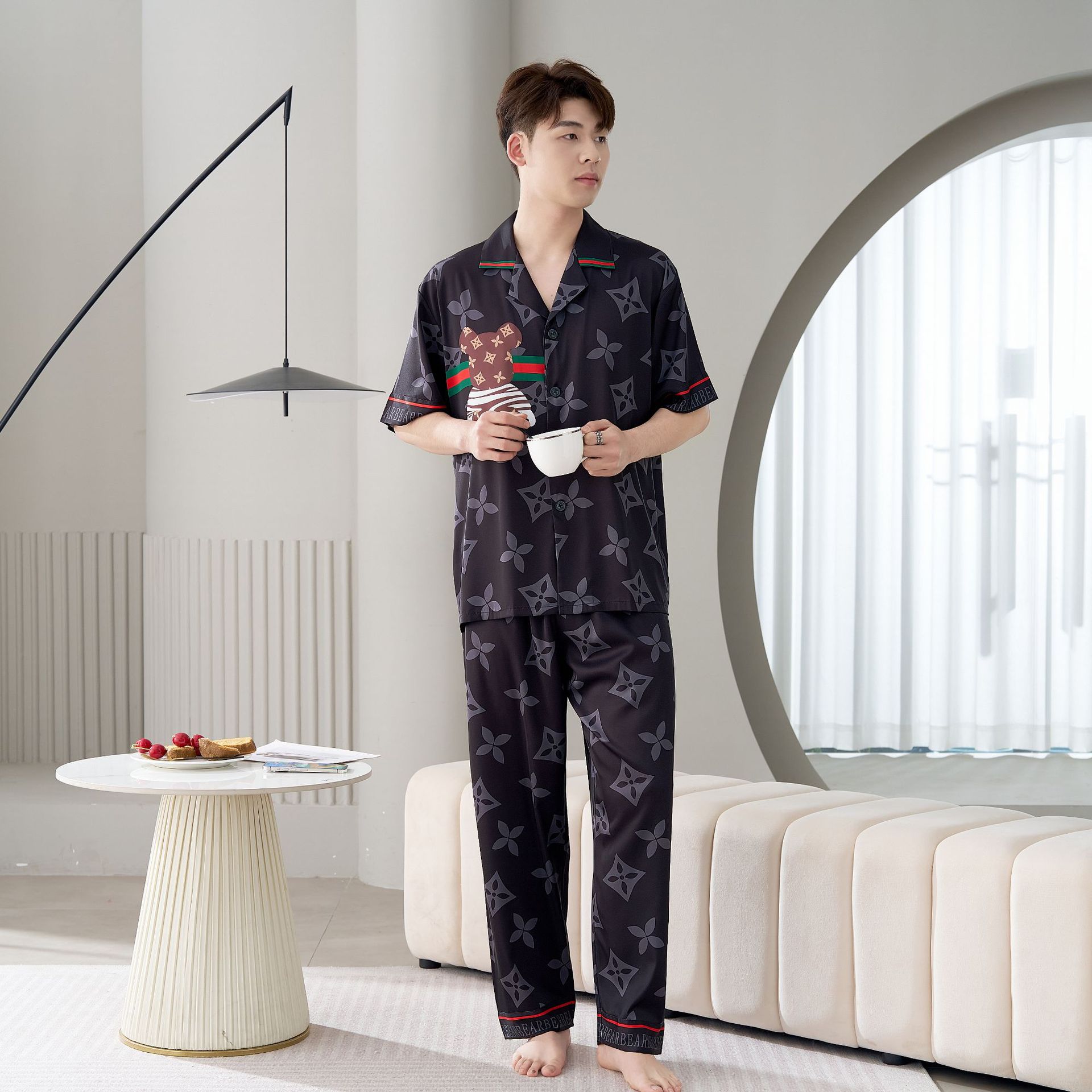 남성용 및 여성용 목욕 가운 잠옷, 대형 얇은 양복, 반팔 반바지 및 바지, 봄 여름 얼음 실크 커플 홈웨어스토어 가기