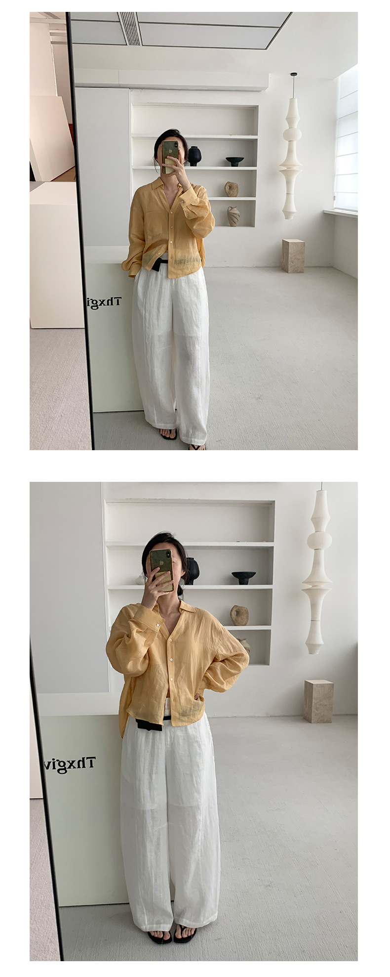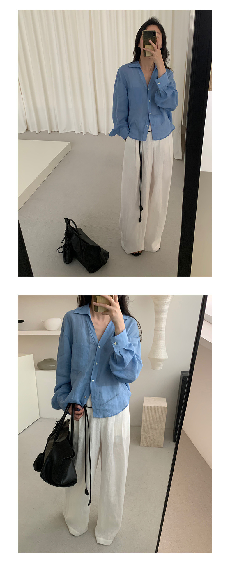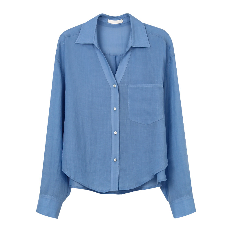 TG 얇은 라미 쿨 V 넥 셔츠 여자 2025 년 여름 새로운 통기성 레이드 백 루즈 탑 24757스토어 가기