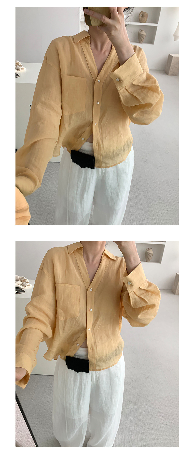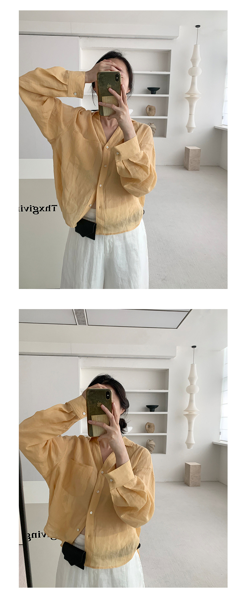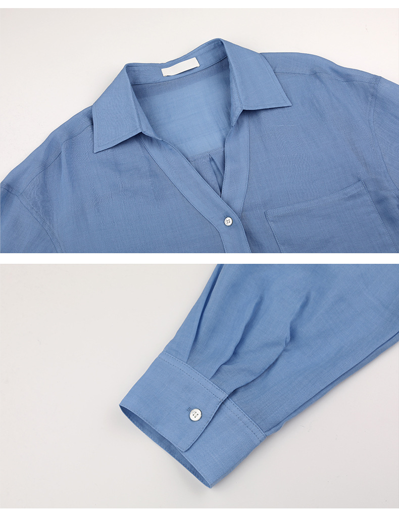 TG 얇은 라미 쿨 V 넥 셔츠 여자 2025 년 여름 새로운 통기성 레이드 백 루즈 탑 24757