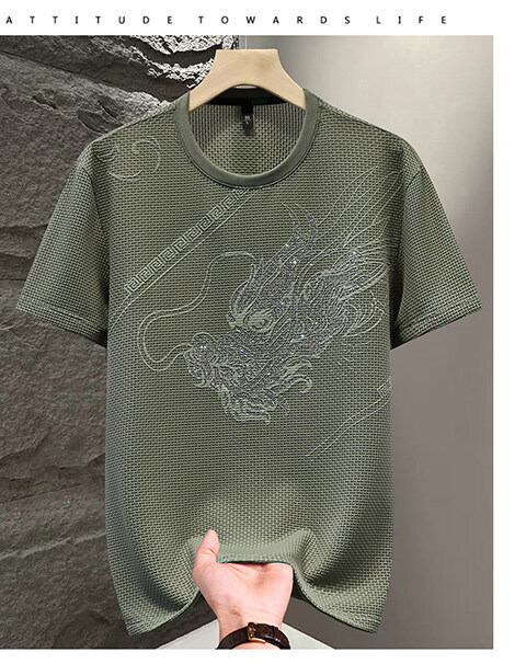 2025 새로운 남성 용 토템 프린트 아이스 실크 크루 넥 반팔 티셔츠 남성용 통기성 반팔 캐주얼 편안한 티셔츠스토어 가기