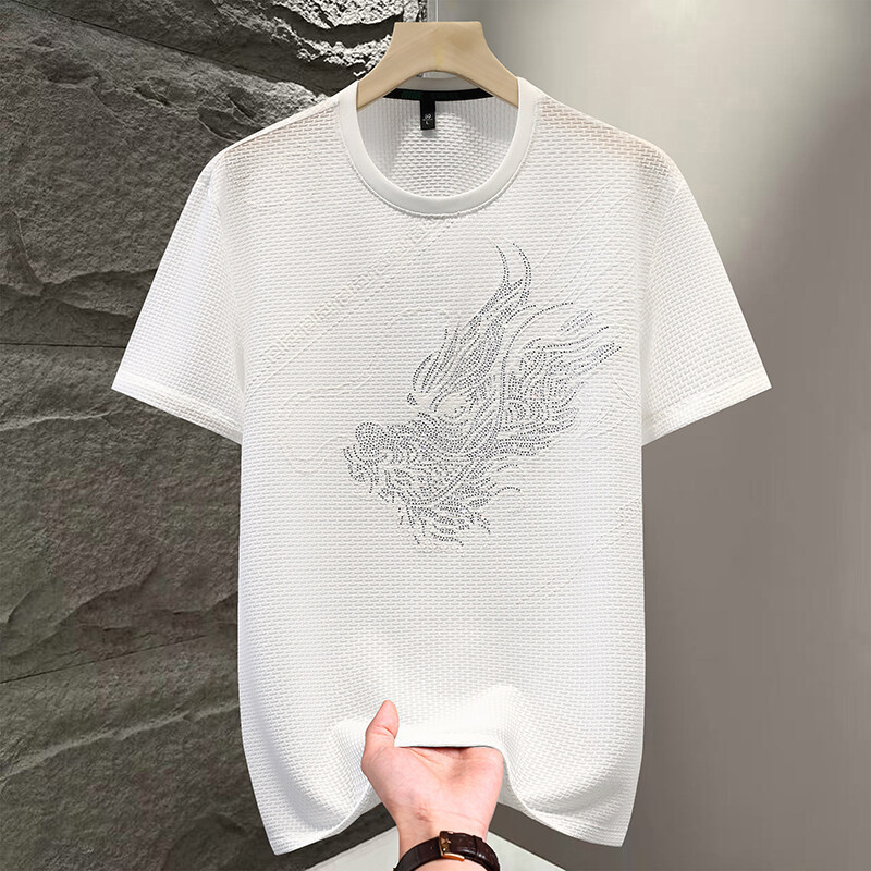 2025 새로운 남성 용 토템 프린트 아이스 실크 크루 넥 반팔 티셔츠 남성용 통기성 반팔 캐주얼 편안한 티셔츠