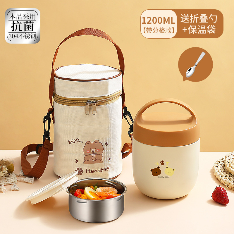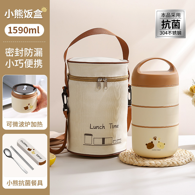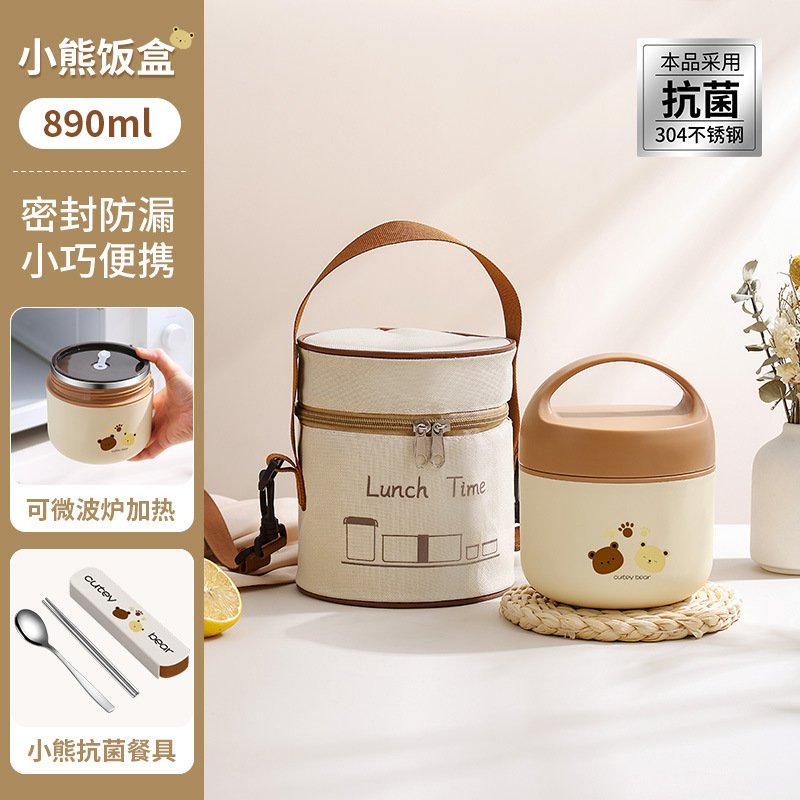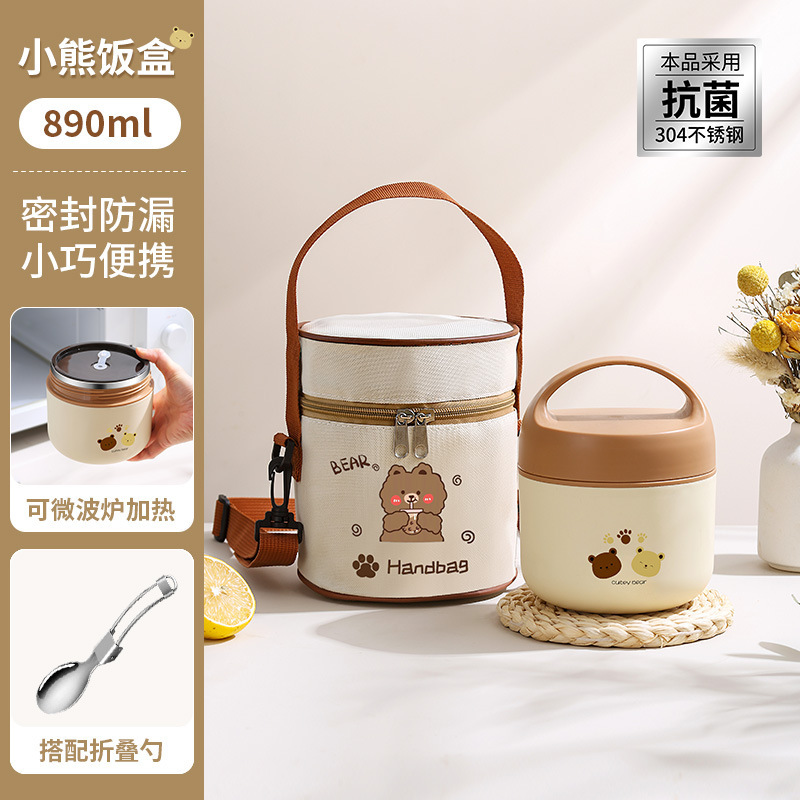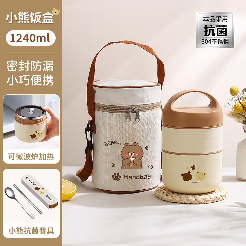 • [304 손잡이 도시락] 더블 레이어 + 식기 + 곰 보온 가방