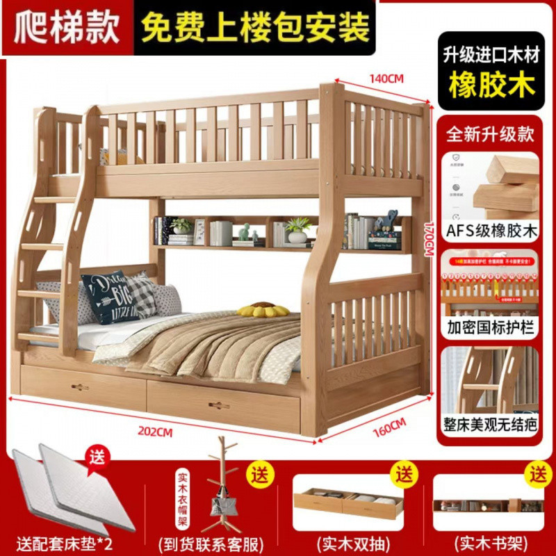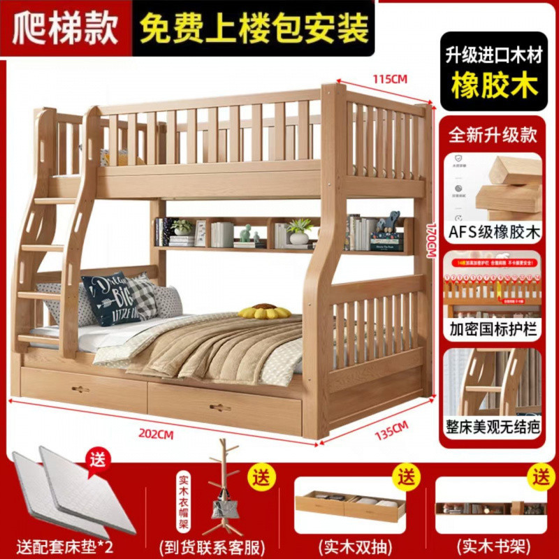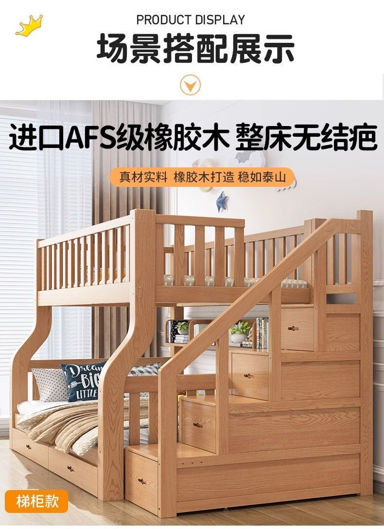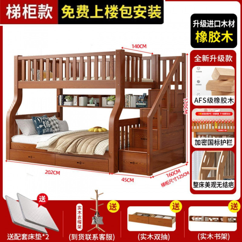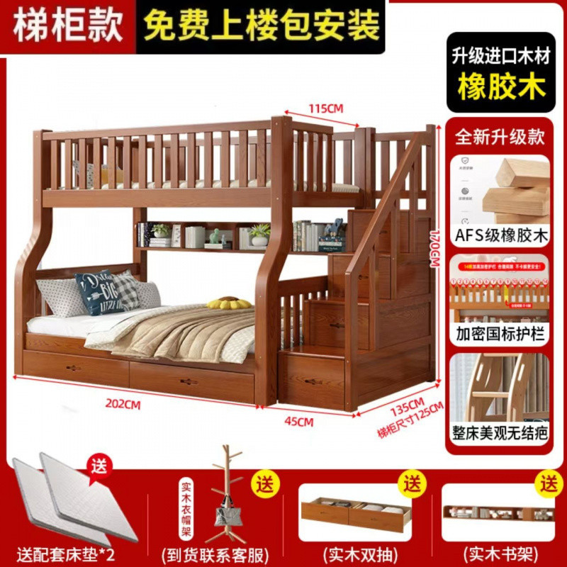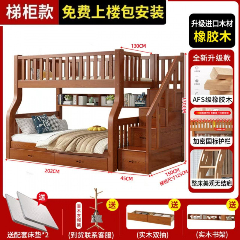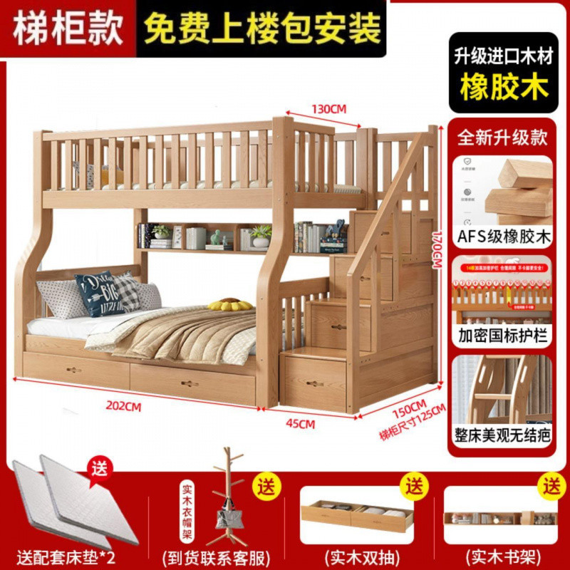 Yla 고무 나무 상하 침대 이층 침대 어린이 침대 풀 솔리드 우드 2 층 더블 침대 2 층 높고 낮은 침대 엄마와 아이스토어 가기