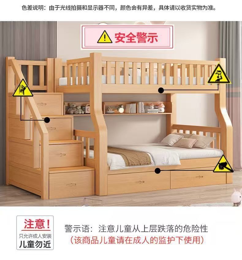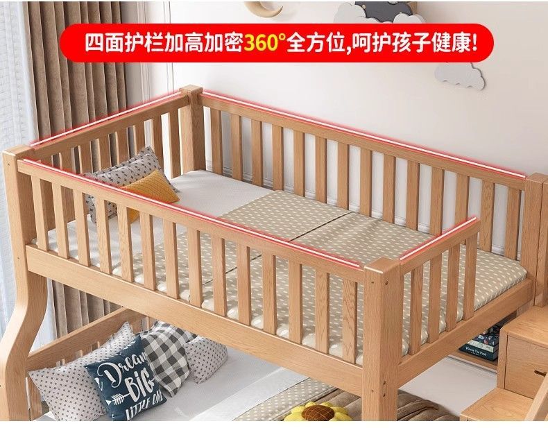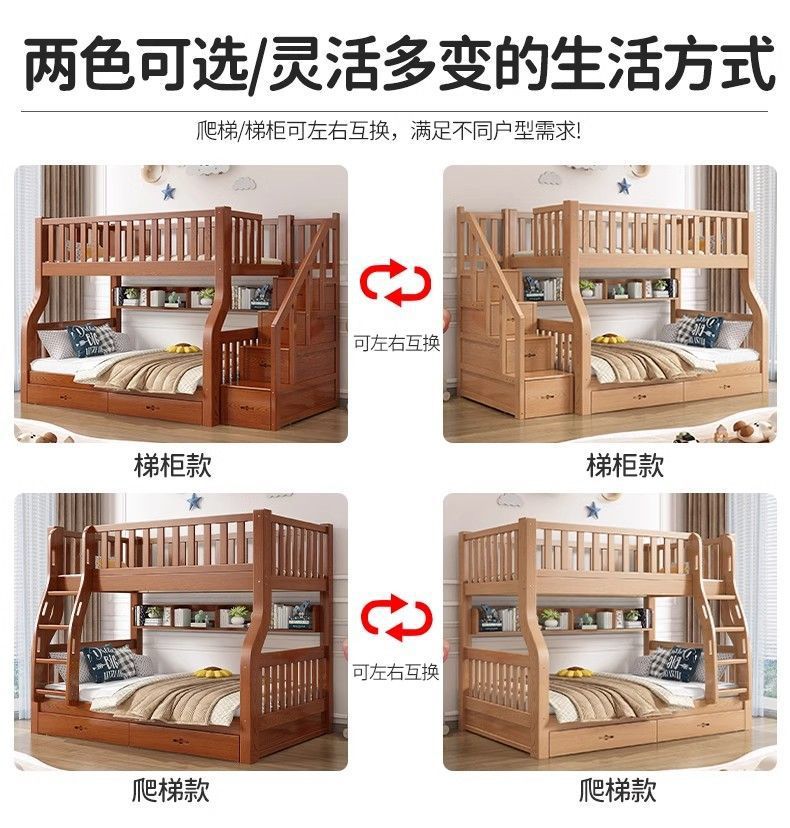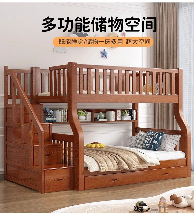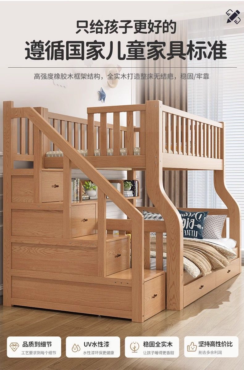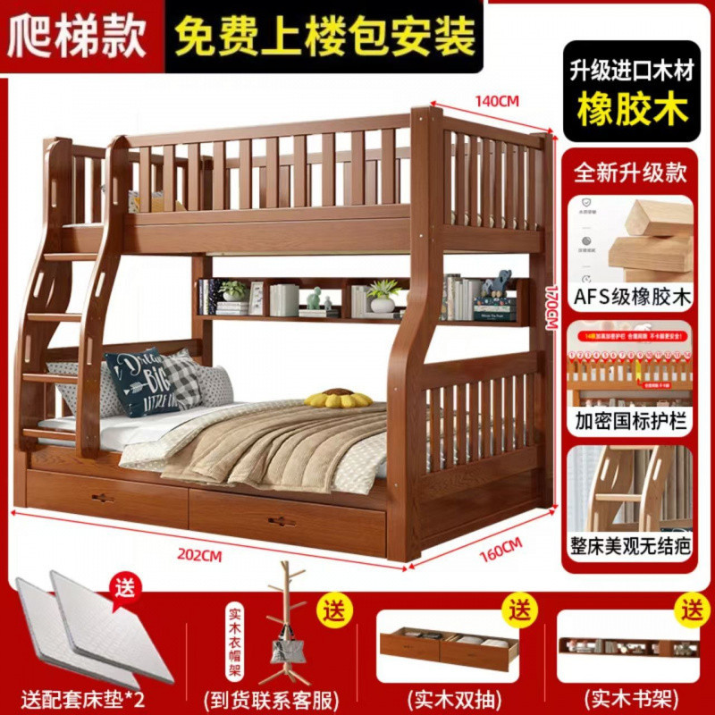 Yla 고무 나무 상하 침대 이층 침대 어린이 침대 풀 솔리드 우드 2 층 더블 침대 2 층 높고 낮은 침대 엄마와 아이스토어 가기