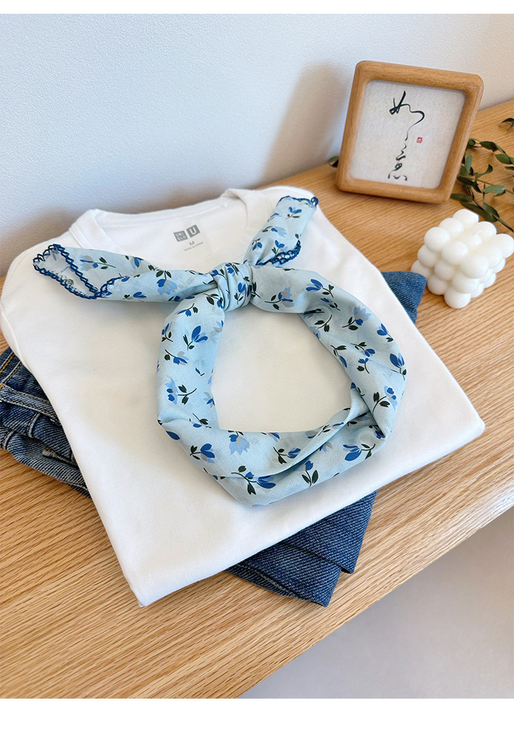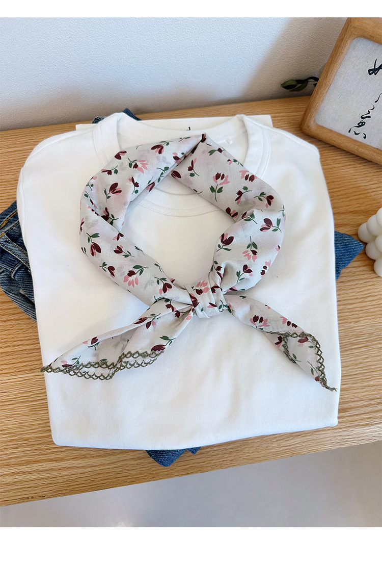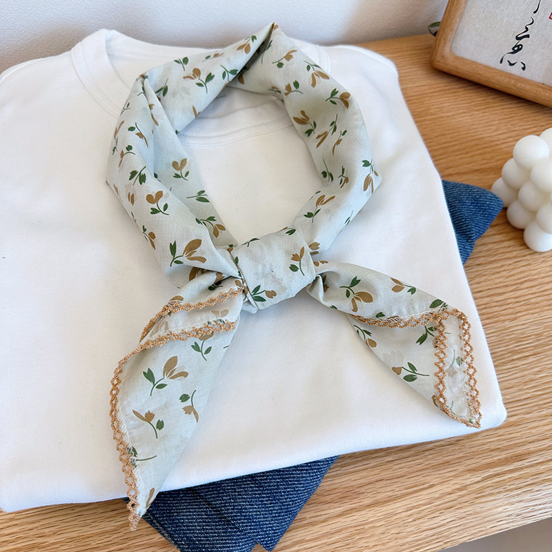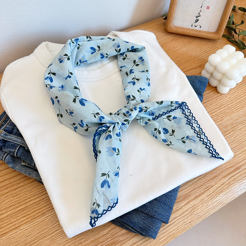 코튼 플로럴 미디엄 스퀘어 스카프 여자 한국식 올매치 목가적 인 스타일 예술적 목 보호 장식 작은 스카프 얇은 스카프