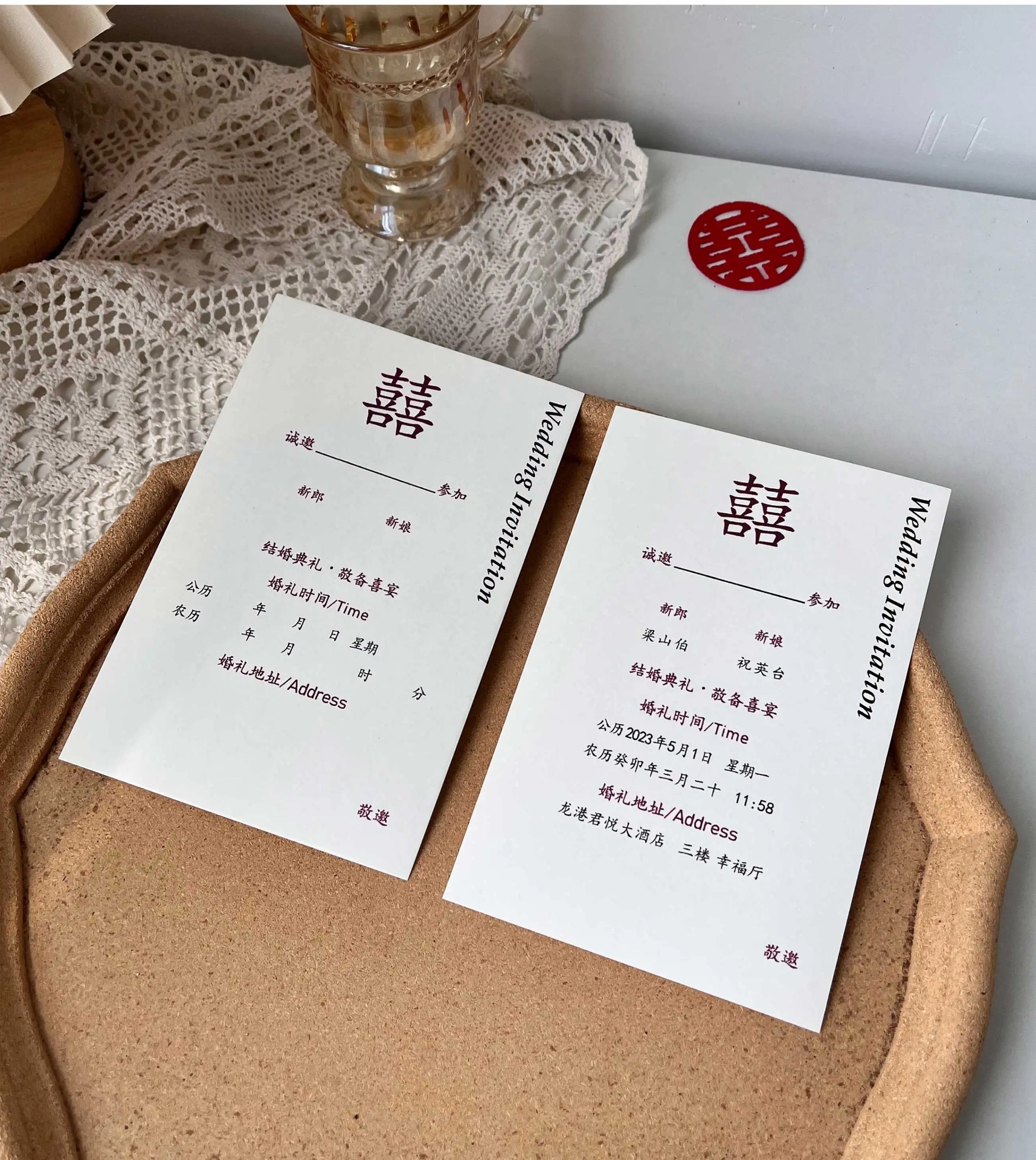 초대장, 청첩장, 웨딩 감성, 2025년 심플하고 우아한 청첩장, 중국식 초대장
