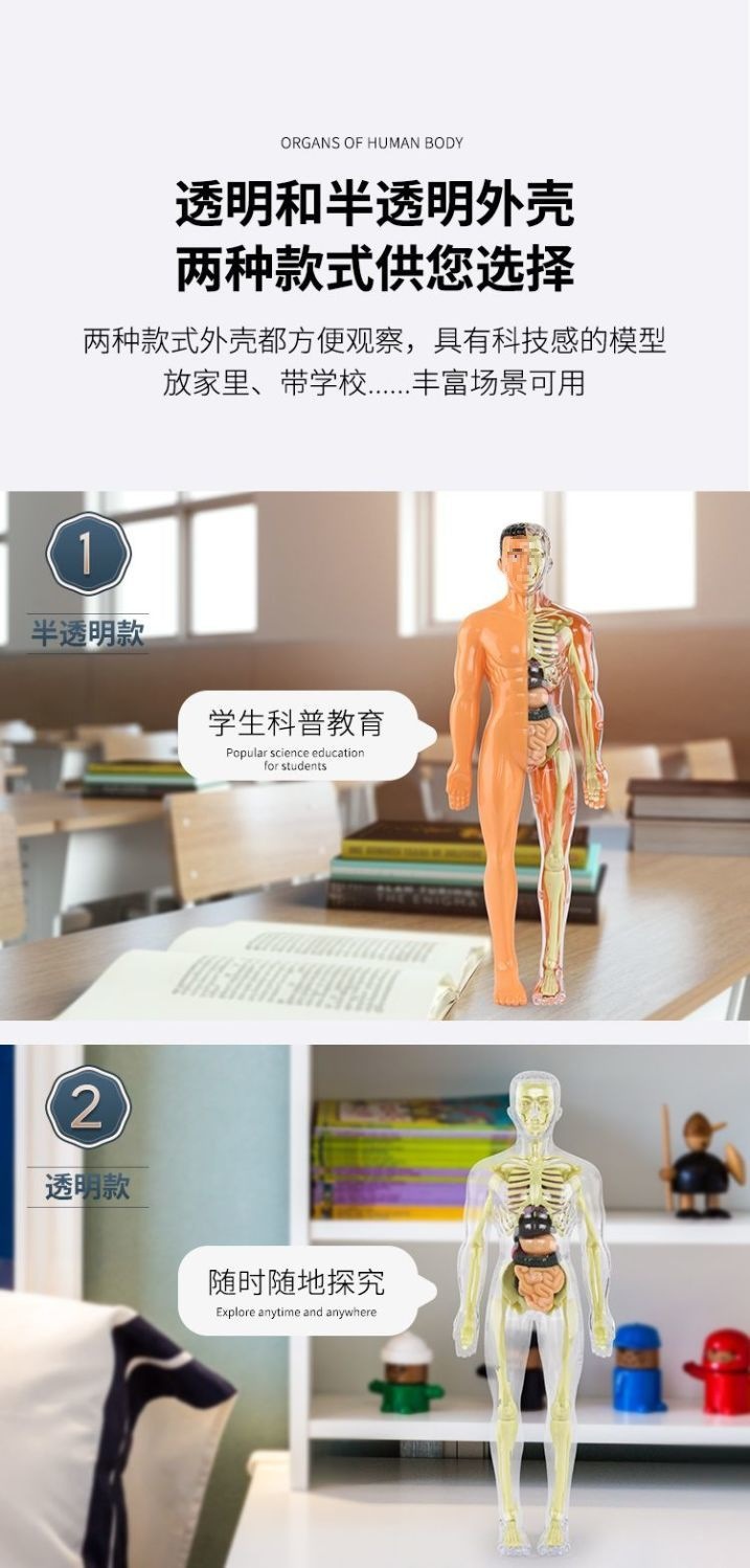 인간 장기 장난감 인간 해골 모델 의료 조립 몸통 구조 내부 장기 해골 내부 장기는 분리 가능