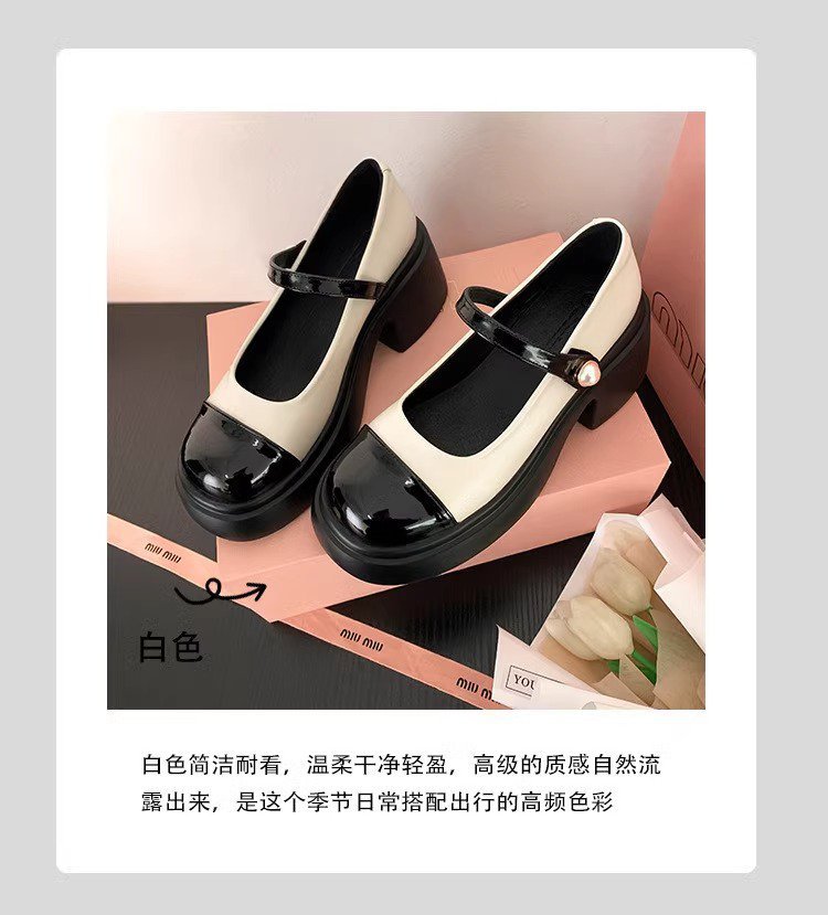 여성을위한 복고풍 두꺼운 굽 메리 제인 신발 2025 봄 새로운 두꺼운 밑창 플랫폼 밑창 색상 일치하는 단일 신발 다목적 작은 가죽 신발스토어 가기