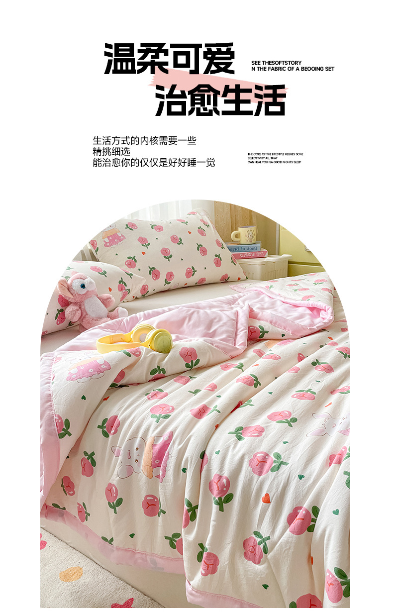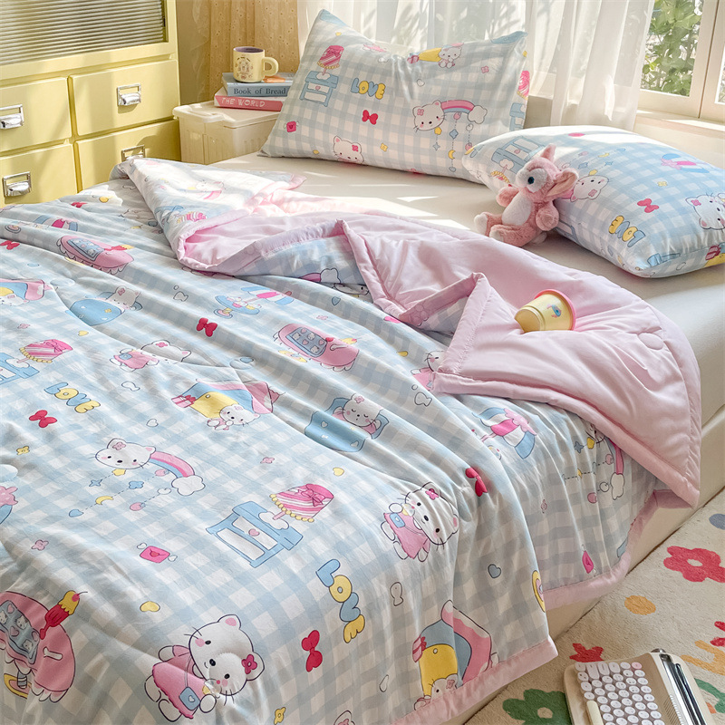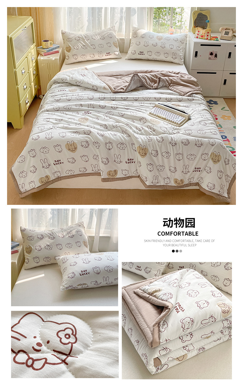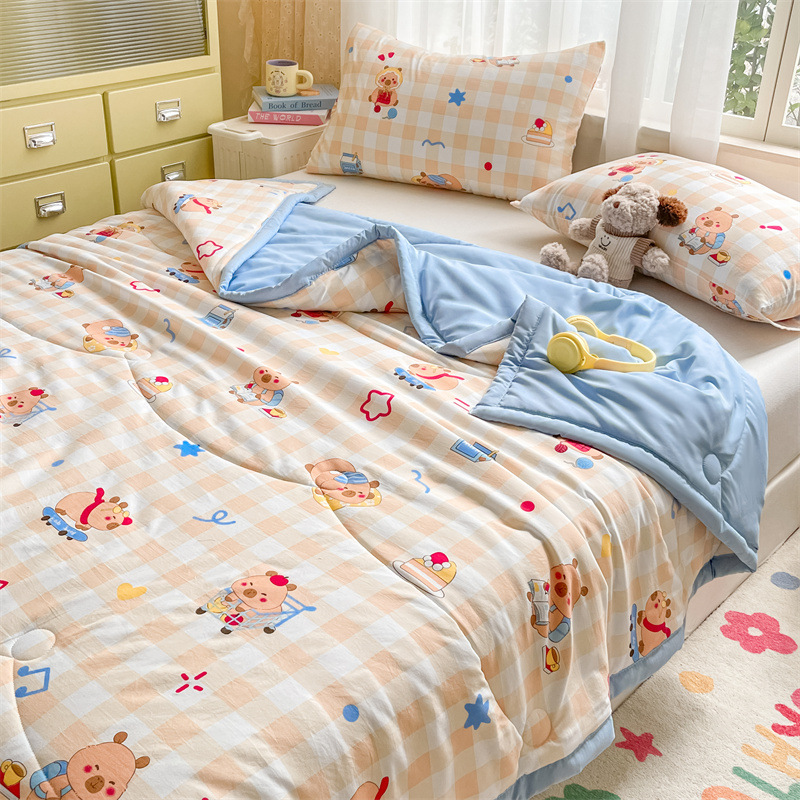 클래스 A 엄마와 아이 더블 레이어 원사 여름 쿨 퀼트 만화 여름 이불 세척 코튼 코어 기숙사 에어컨 이불 선물 이불 도매 A스토어 가기