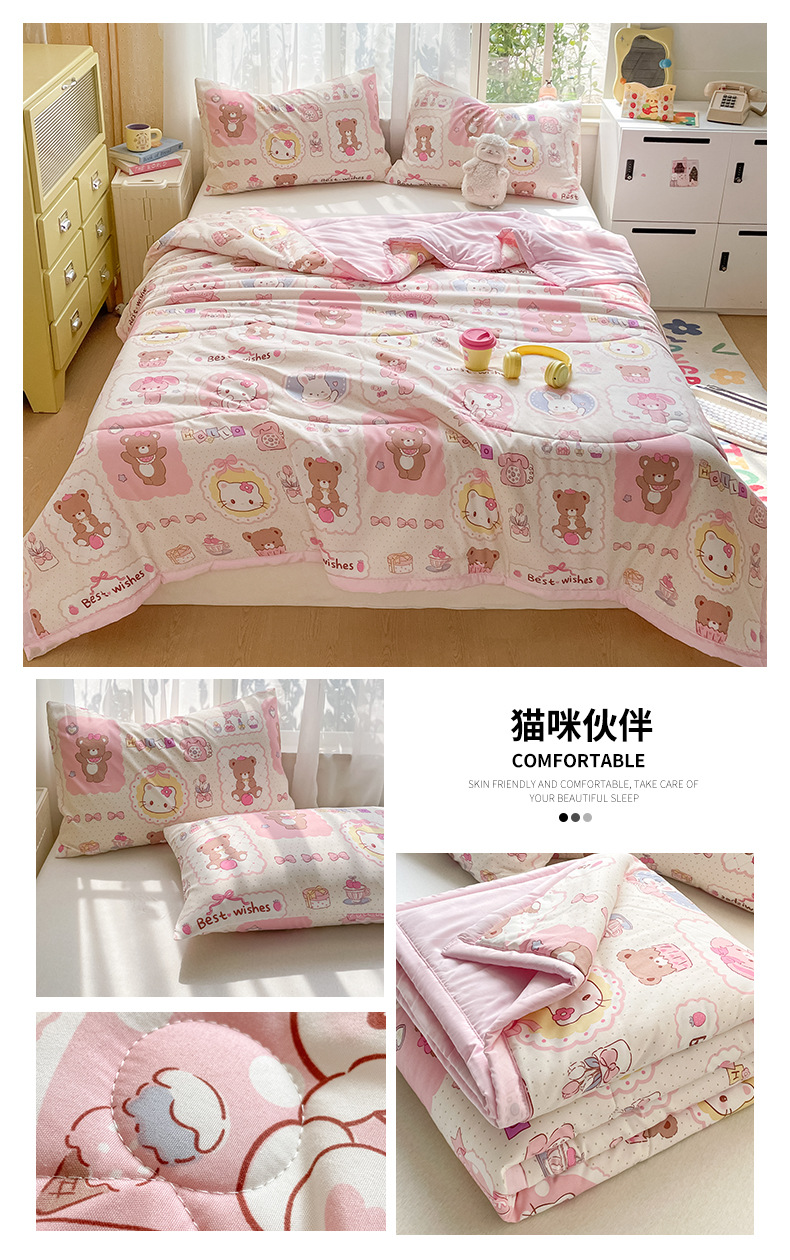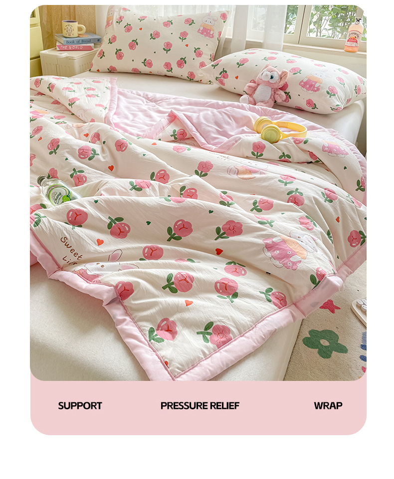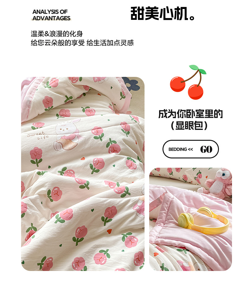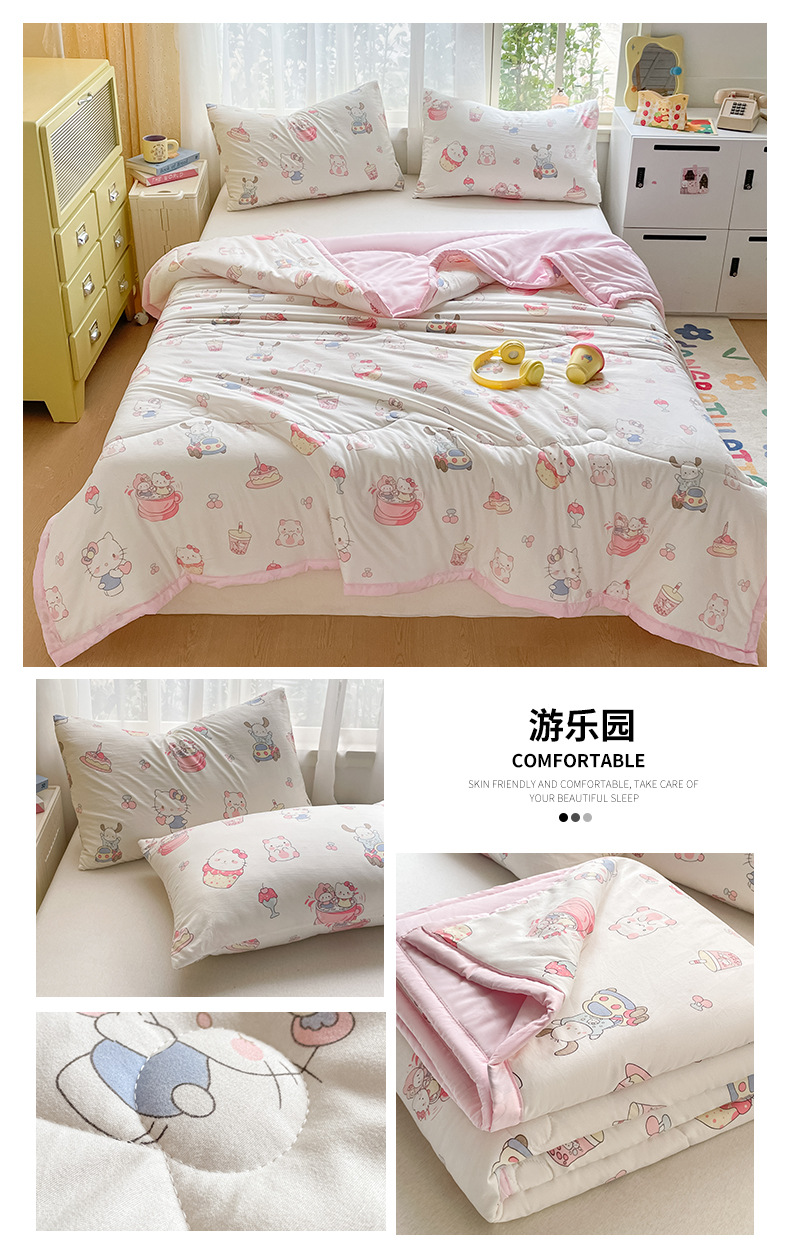 클래스 A 엄마와 아이 더블 레이어 원사 여름 쿨 퀼트 만화 여름 이불 세척 코튼 코어 기숙사 에어컨 이불 선물 이불 도매 A스토어 가기