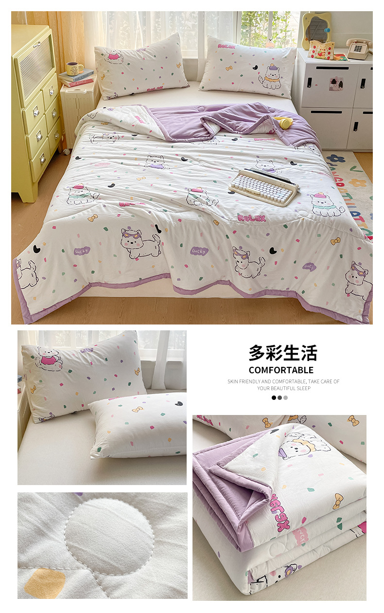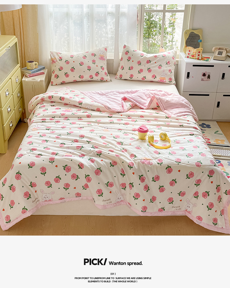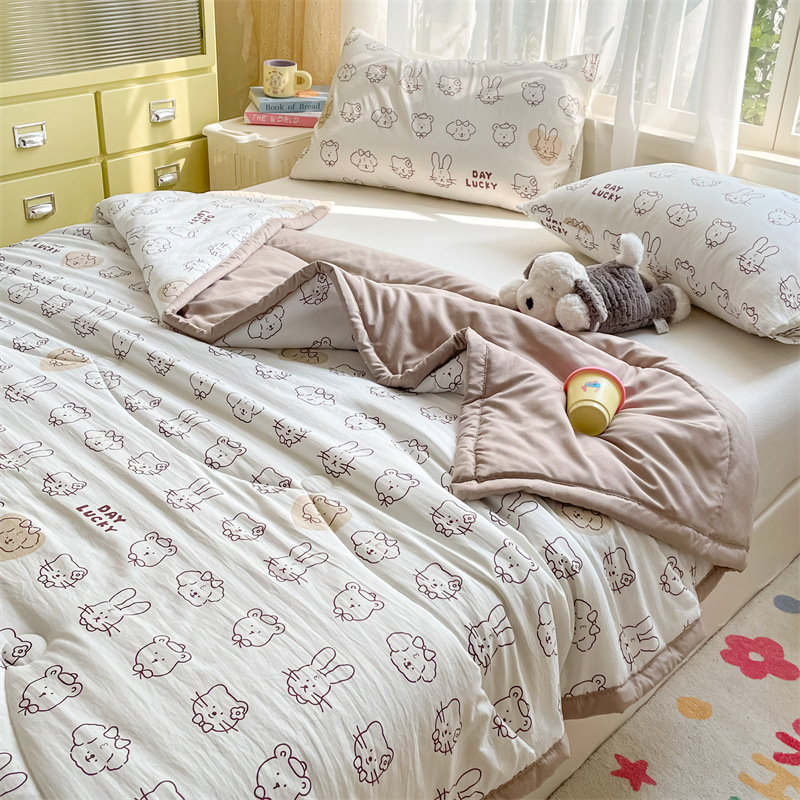 클래스 A 엄마와 아이 더블 레이어 원사 여름 쿨 퀼트 만화 여름 이불 세척 코튼 코어 기숙사 에어컨 이불 선물 이불 도매 A