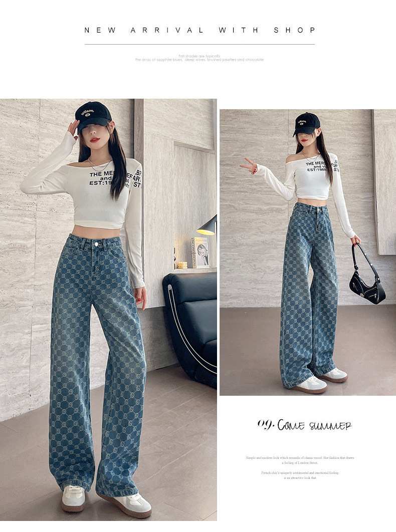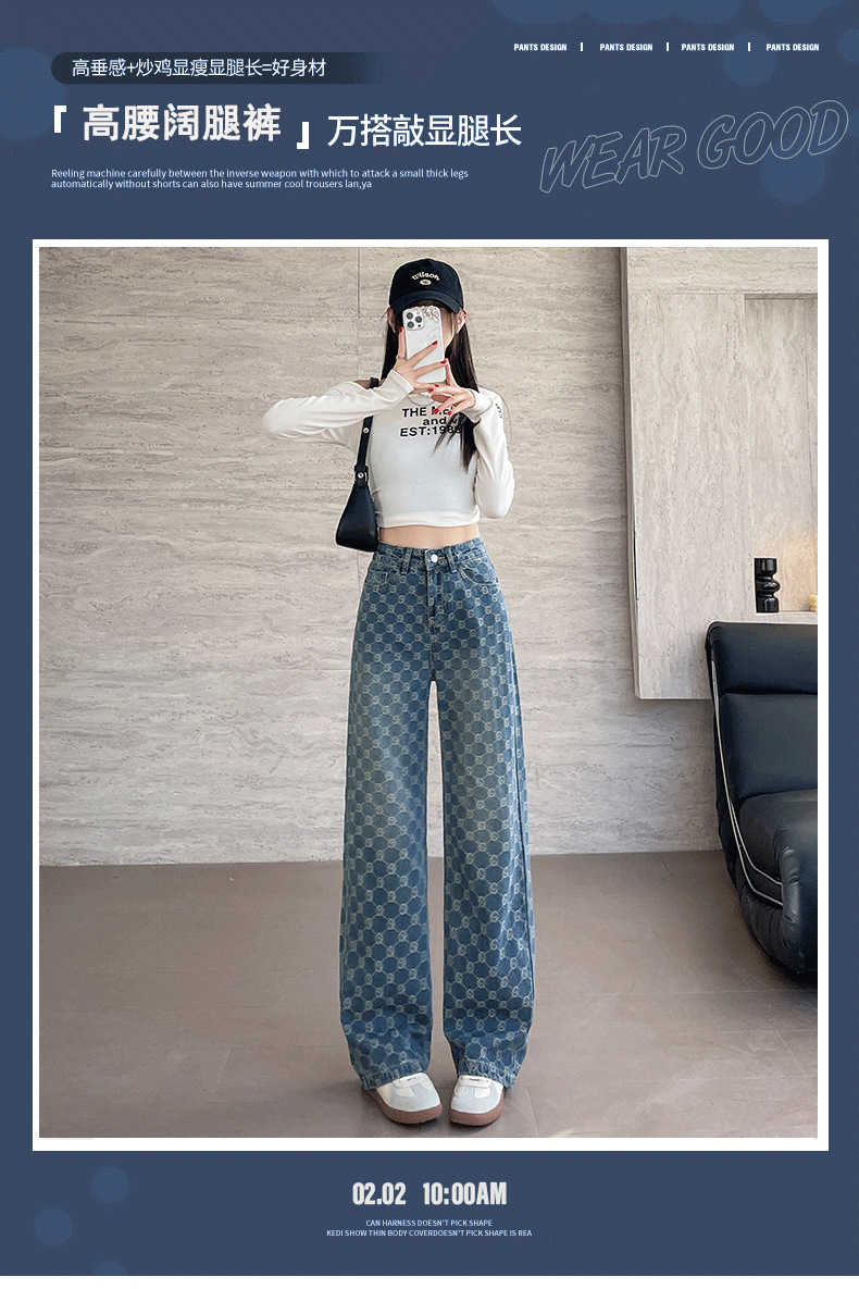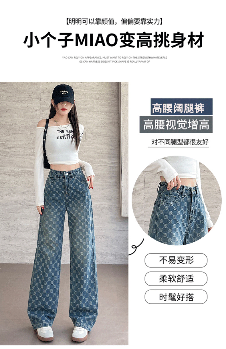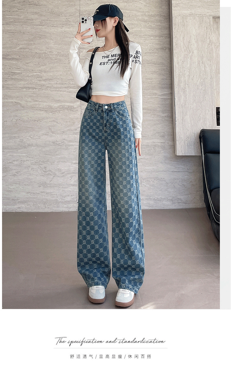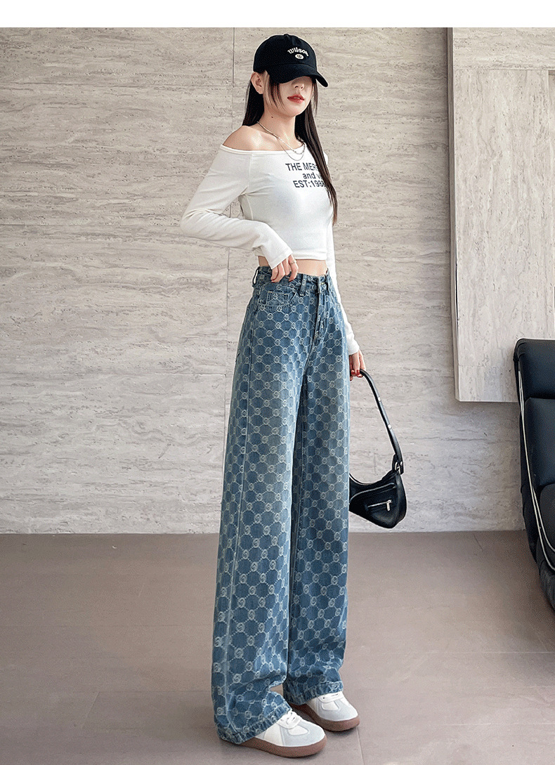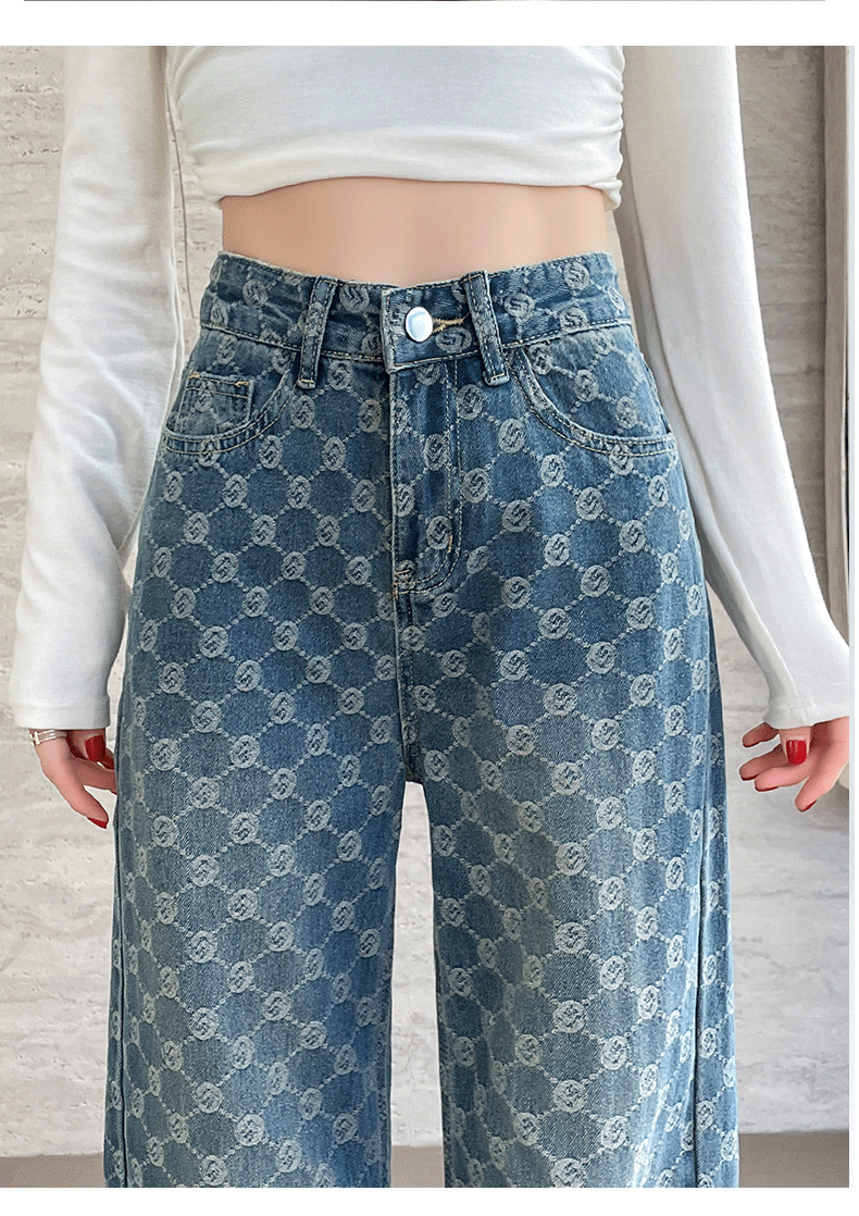 자카드 스트레이트 청바지 여성의 봄과 여름 2025 새로운 높은 허리 슬리밍 느슨한 디자인 감각 넓은 다리 바지스토어 가기