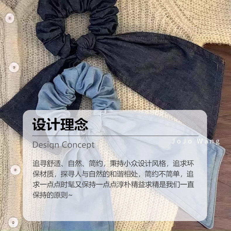 올매치 게으른 데님 블루 리본 활 큰 머리 밴드 큰 그릇 고무 밴드 Ponyon 헤어 로프 헤어 액세서리스토어 가기