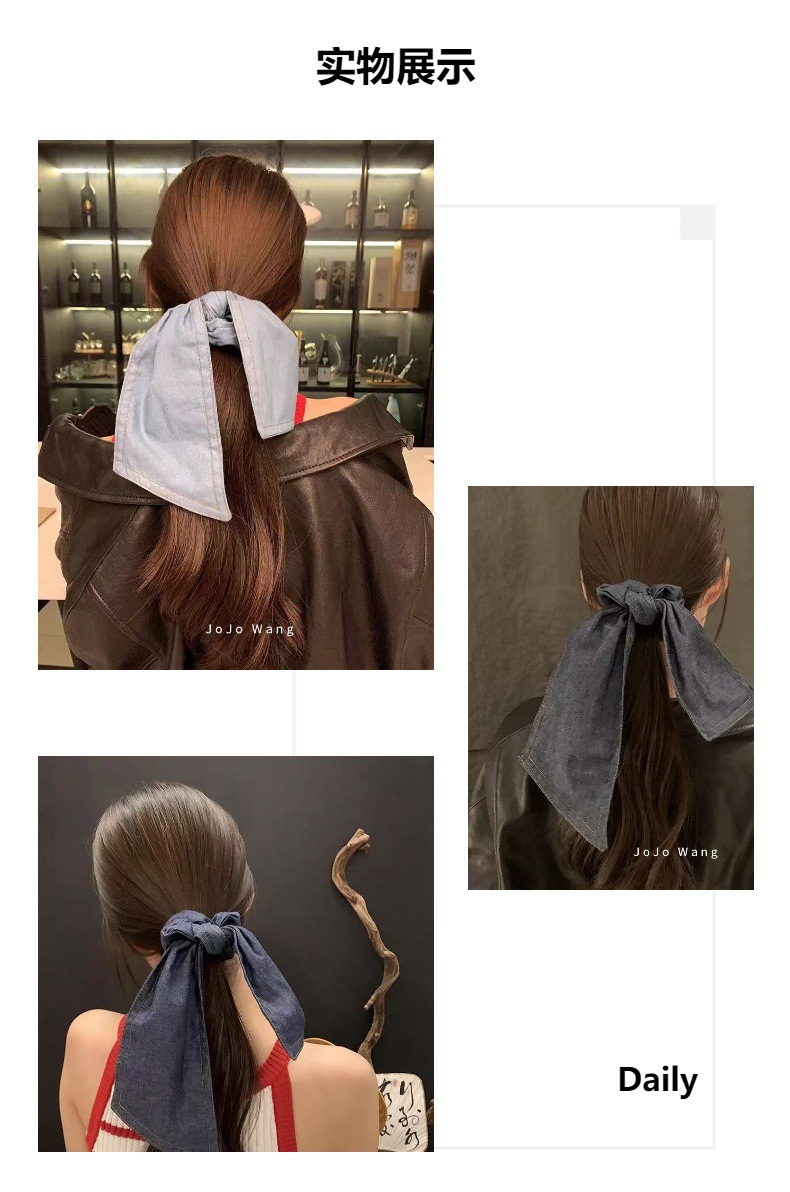 올매치 게으른 데님 블루 리본 활 큰 머리 밴드 큰 그릇 고무 밴드 Ponyon 헤어 로프 헤어 액세서리