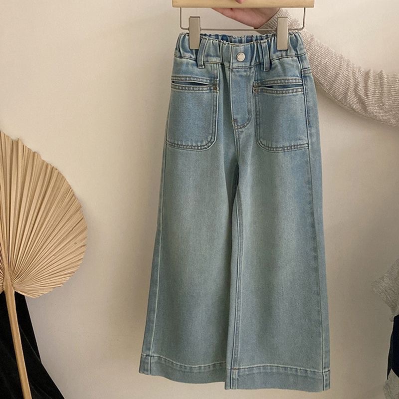 한국 아동복 소녀 세트 2025 어린이 유행 가짜 투피스 탑 세련된 소녀의 넓은 다리 바지 청바지스토어 가기