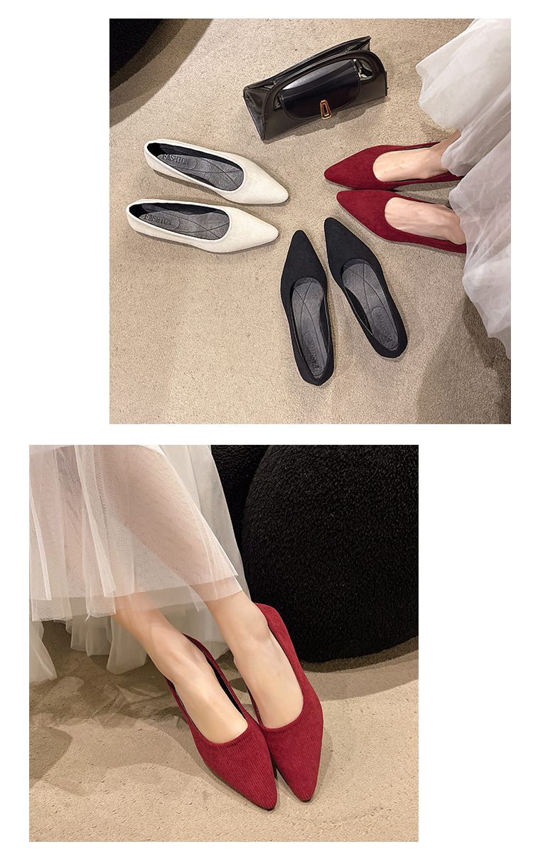 2024 봄과 가을 새로운 스타일 프렌치 포인티드 토 여성용 로우 힐 싱글 슈즈 한국식 펌프스 플랫 통근 슬립 온 여성용 신발스토어 가기