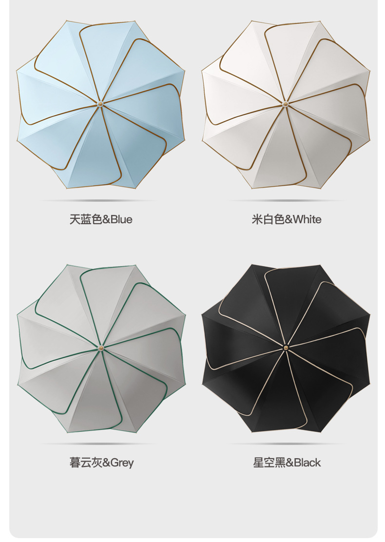 • 가죽 곡선 손잡이 - 8개의 뼈 꽃잎 직선 우산 - 무윤 그레이