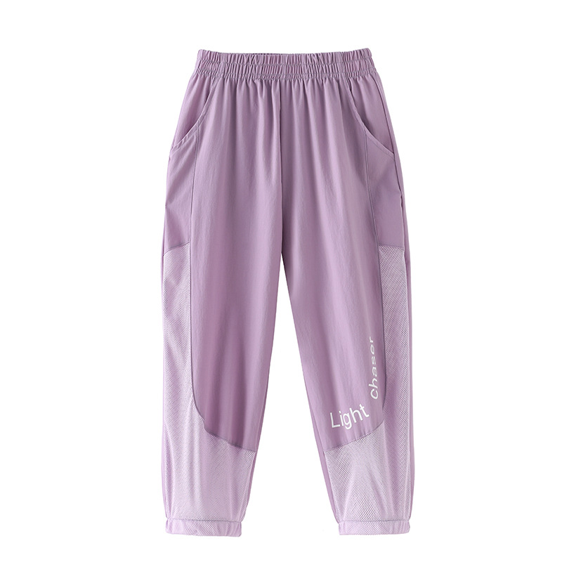 25 개의 새로운 어린이 통기성 메쉬 폭발성 아이스 팬츠는 캐주얼 바지 느슨한 자외선 차단제 소년과 소녀 빠른 건조 바지를 원합니다.