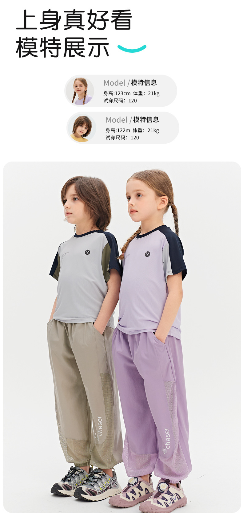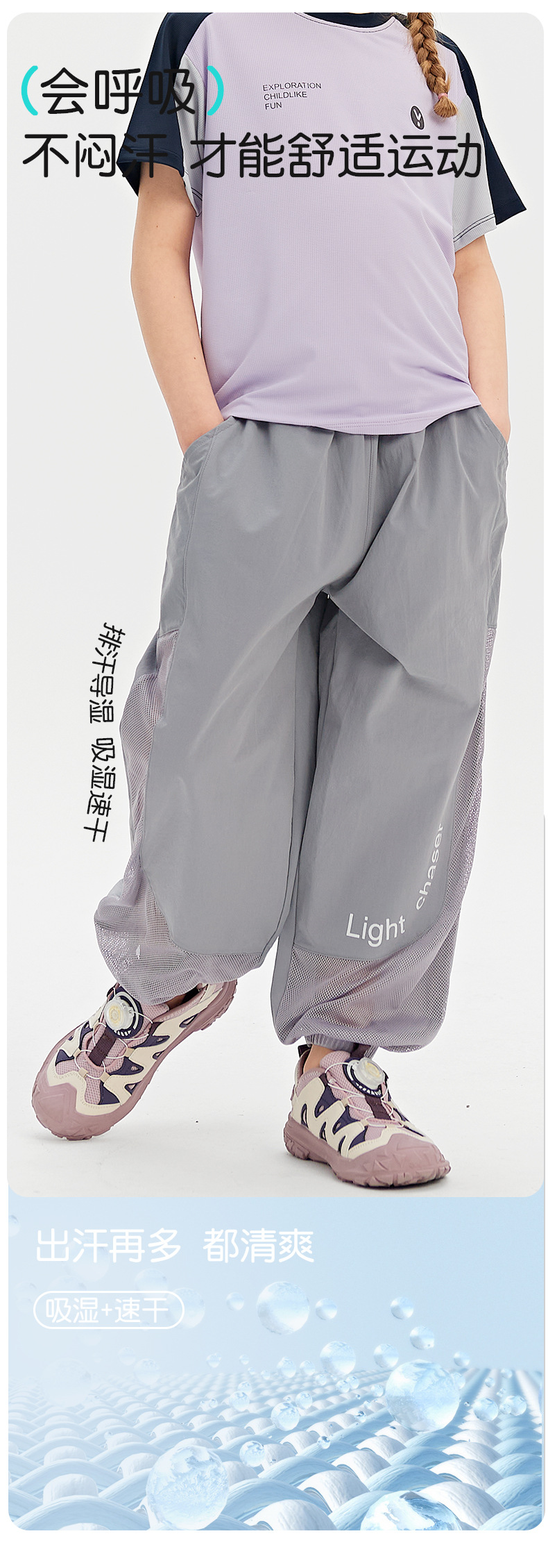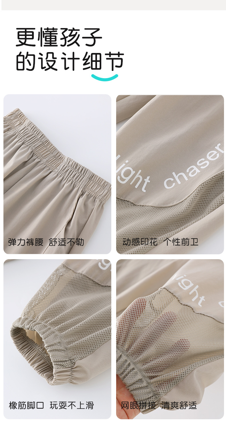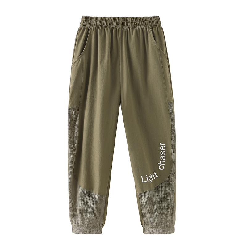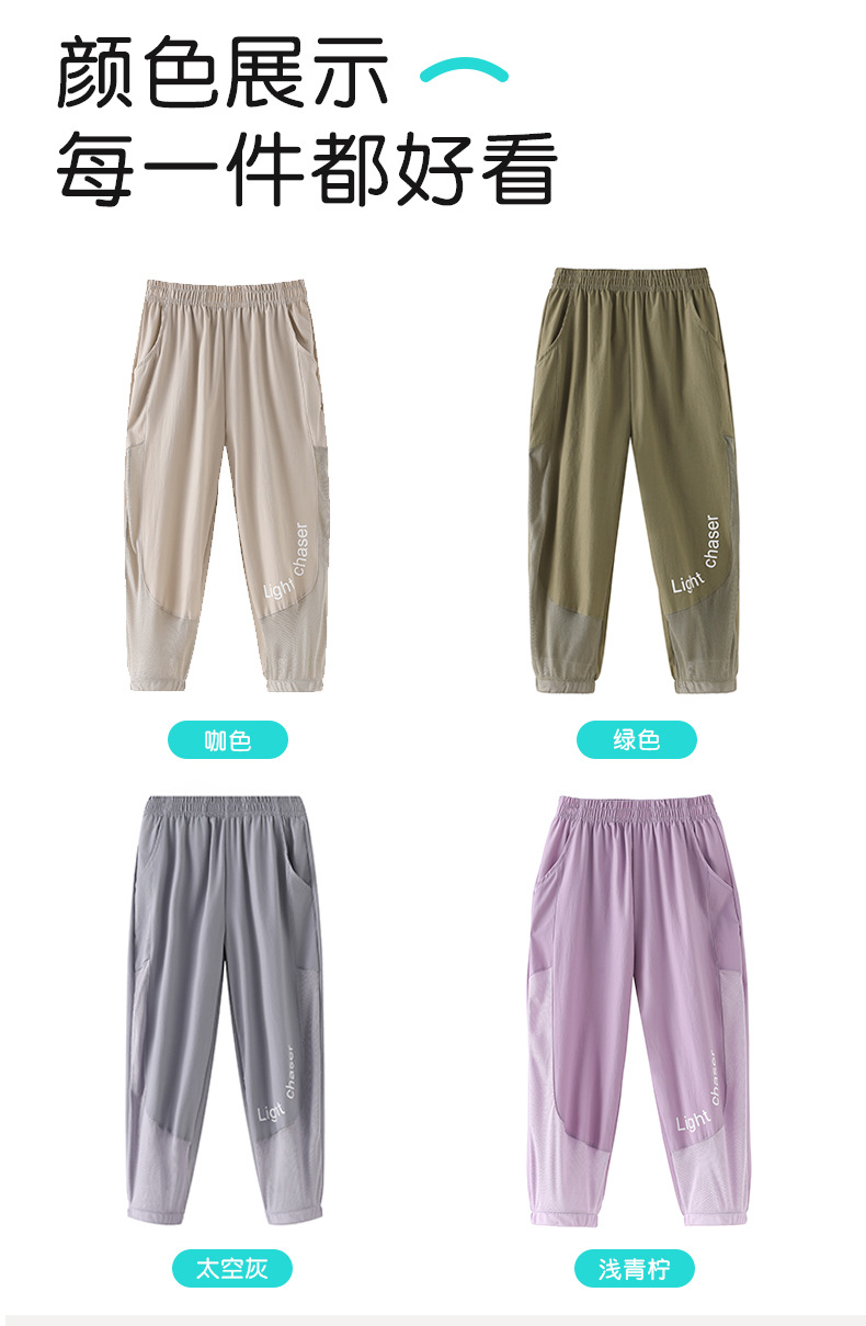 25 개의 새로운 어린이 통기성 메쉬 폭발성 아이스 팬츠는 캐주얼 바지 느슨한 자외선 차단제 소년과 소녀 빠른 건조 바지를 원합니다.스토어 가기